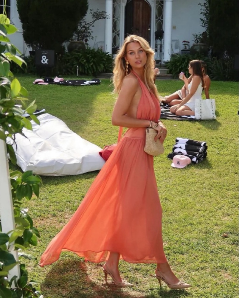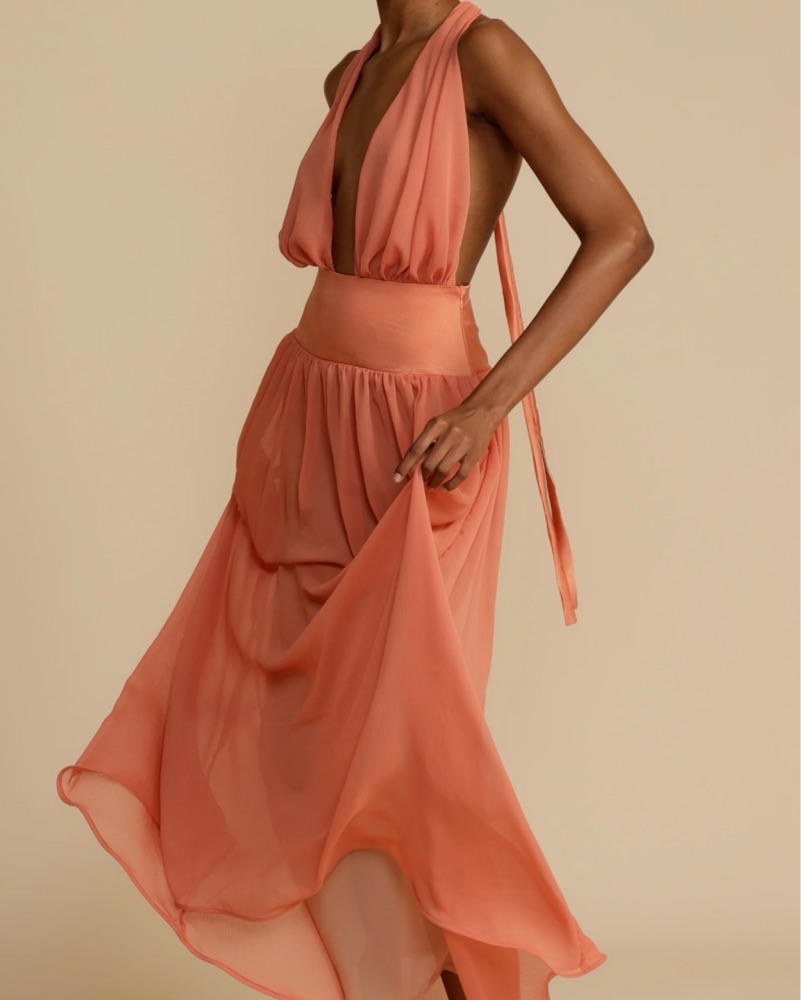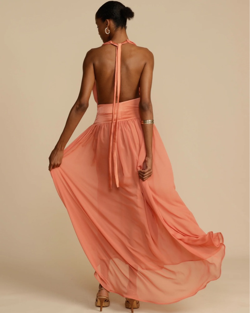 Introducing Serena, a striking fusion of femininity and elegance. Designed in a lustrous Coral hue, she radiates a warm and earthy charm. Serena features a flattering drop-waistband crafted from a quality viscose. Her graceful georgette drape cascades over the bust and flows from the hips.