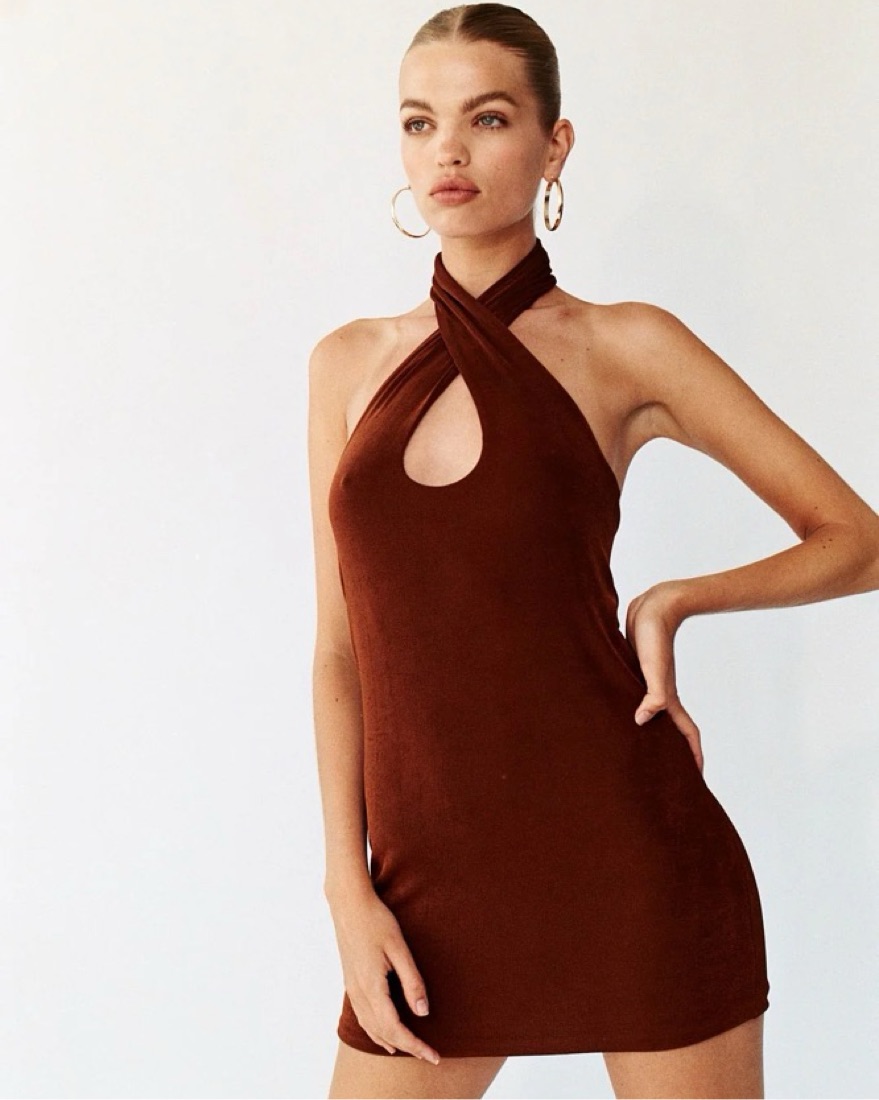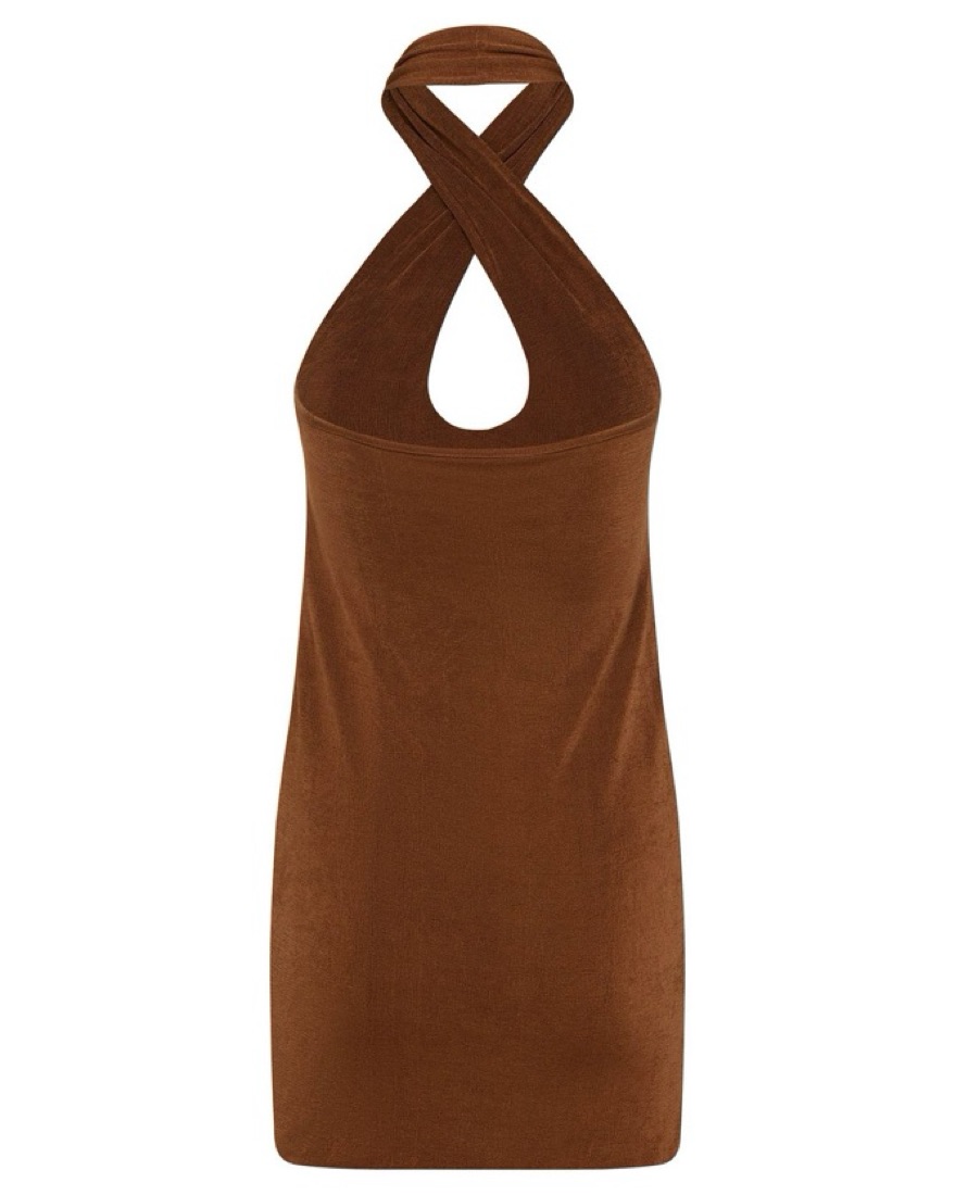 With Jean Lena Halter Mini Dress | Brown by With Jean - Pickle