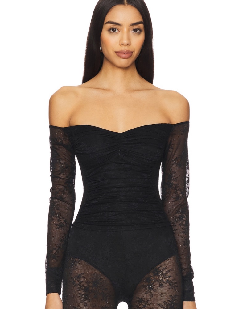 Chic Off-the-Shoulder Black Lace Shirt by AFRM - Pickle