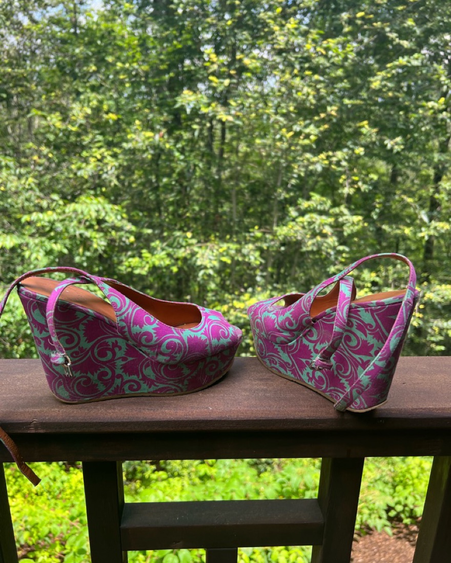 Gently worn, great for going out, so comfy! 💜💚 authentic. slight markings