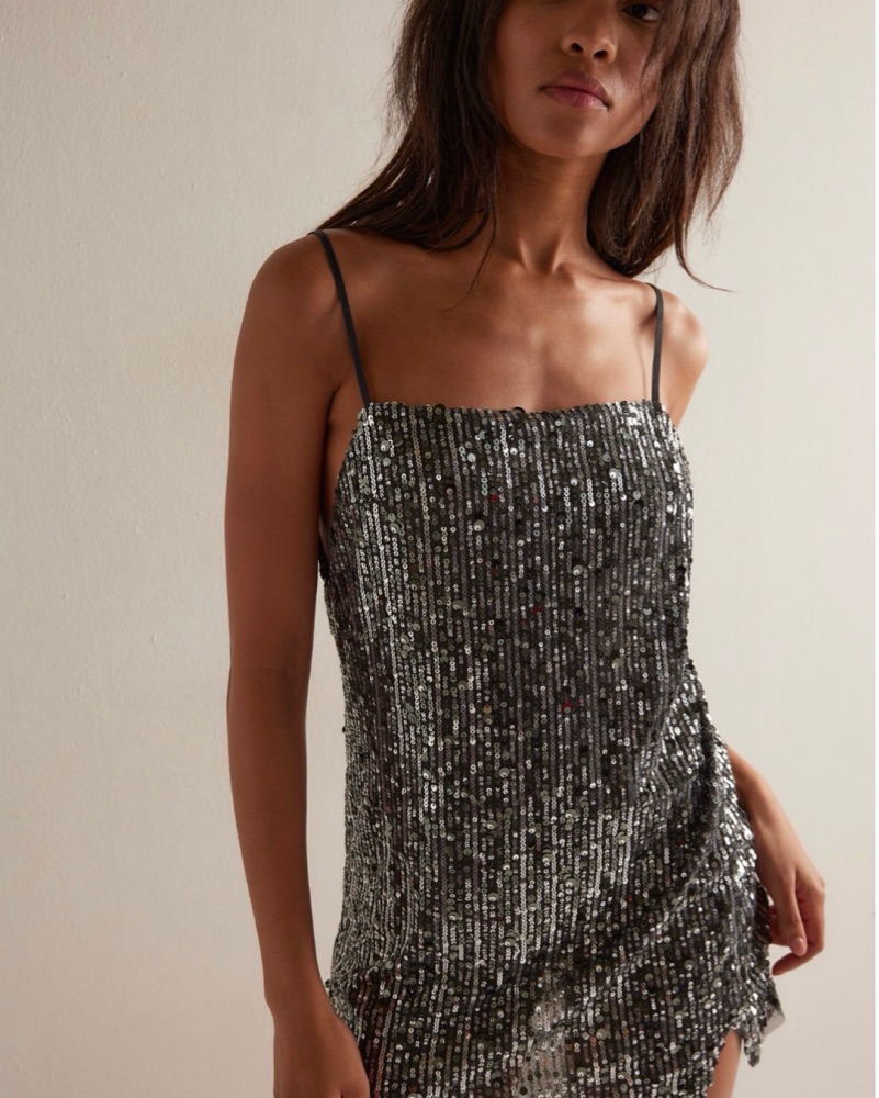 Shimmering Sequin Mini Dress by Free People - Pickle