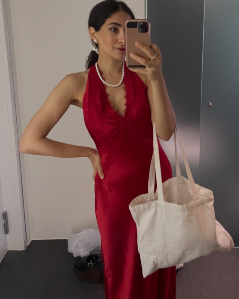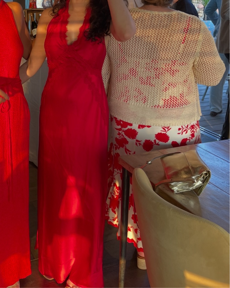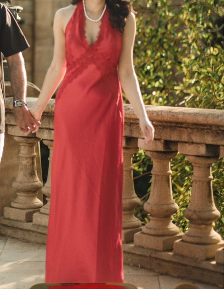 Long Sexy Red Satin Dress W/ Lace Detail by Spanish Boutique - Pickle