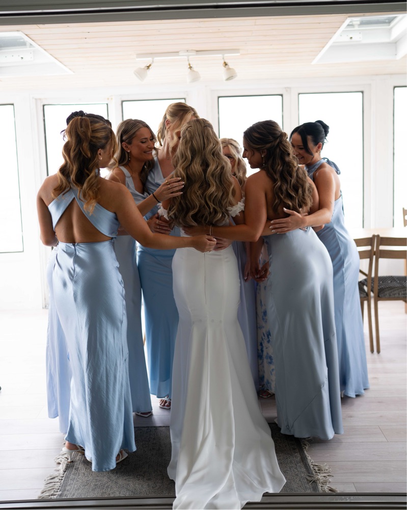 This stunning slate blue bridesmaid dress is perfect for a formal wedding. The flattering silhouette and luxurious fabric will have you looking and feeling their best.