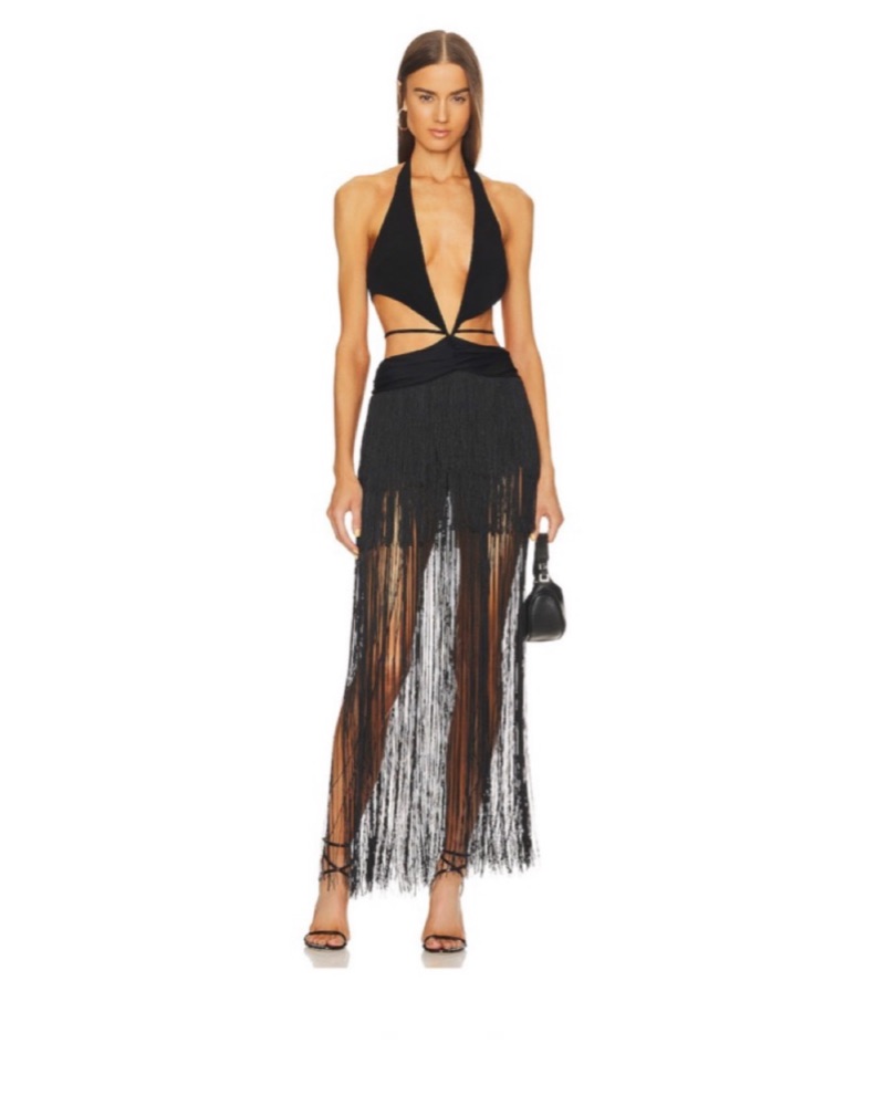 Black Fringe Cutout Dress by Michael Costello - Pickle