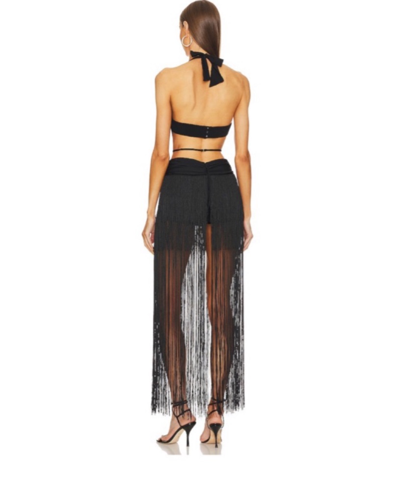 Black Fringe Cutout Dress