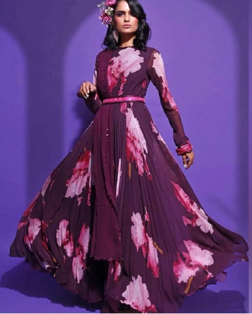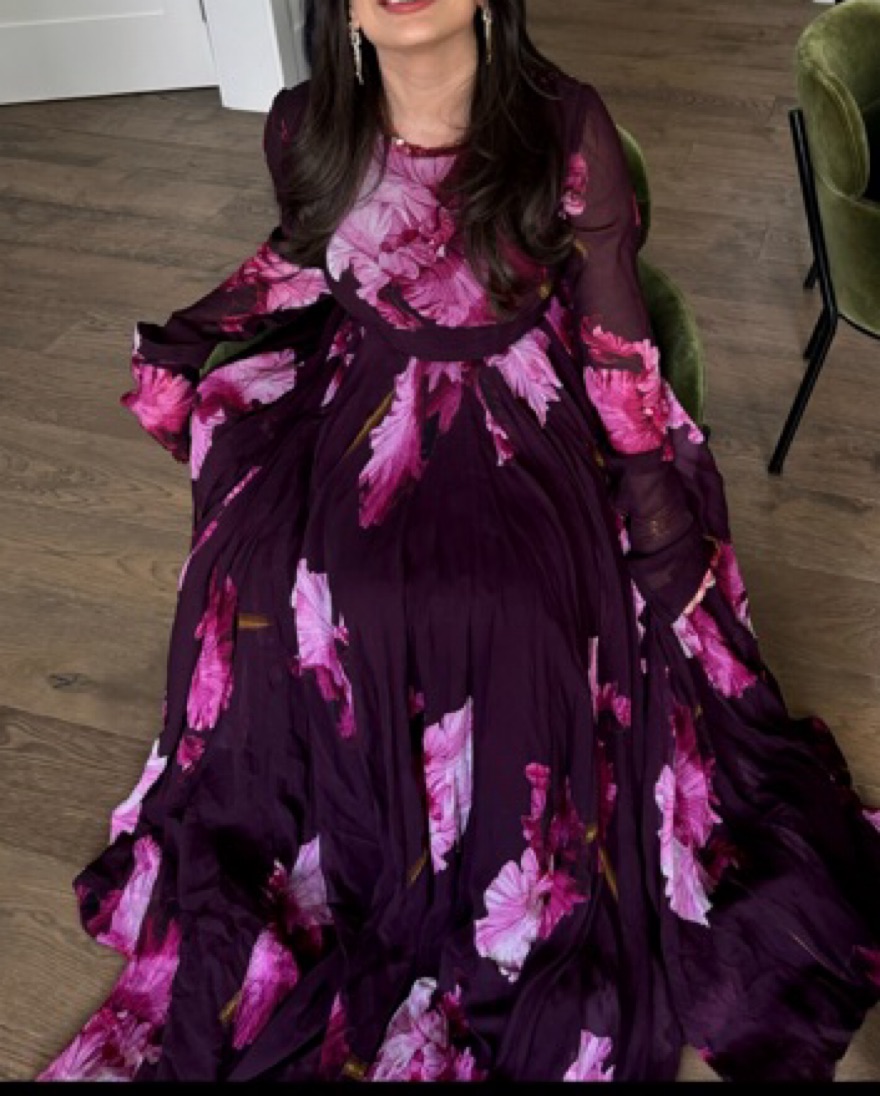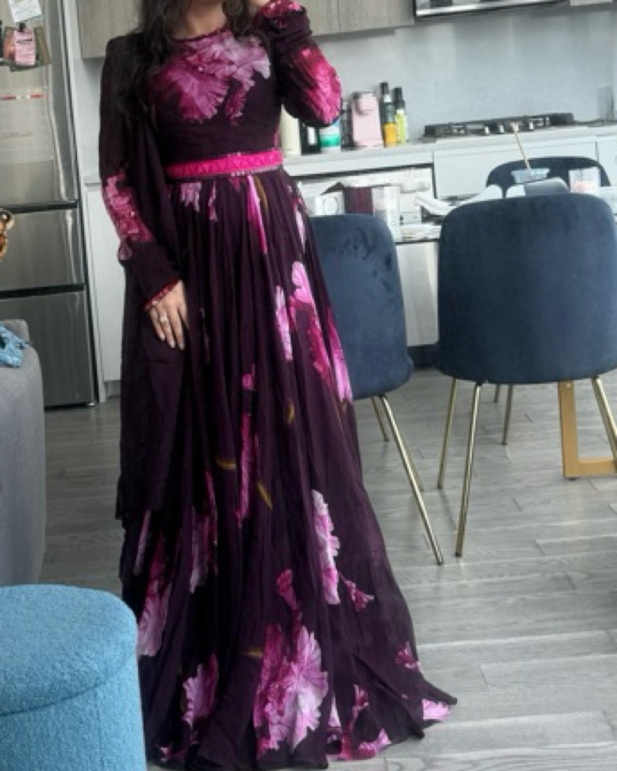Indian designer gown/ anarkali. Perfect for indian, pakistani, or any south asain wedding! Comes with belt and scarf as shown on the model, can provide that as well