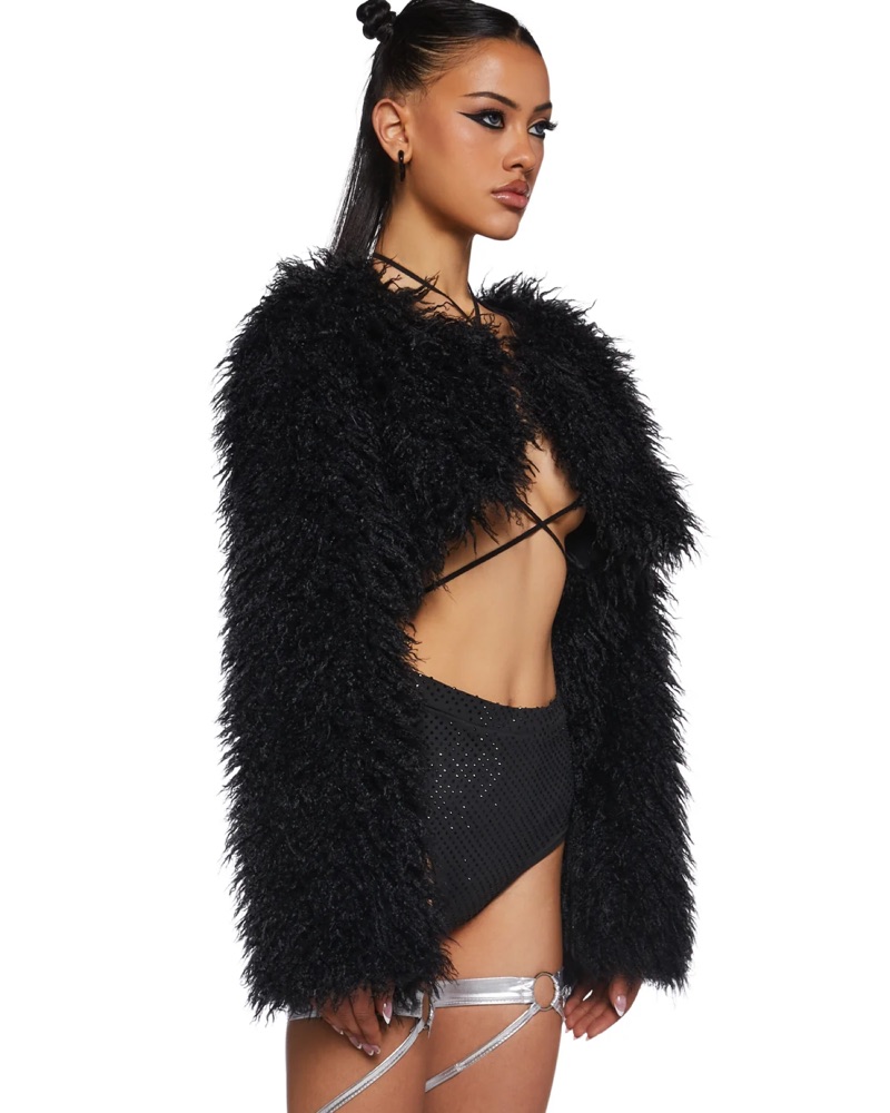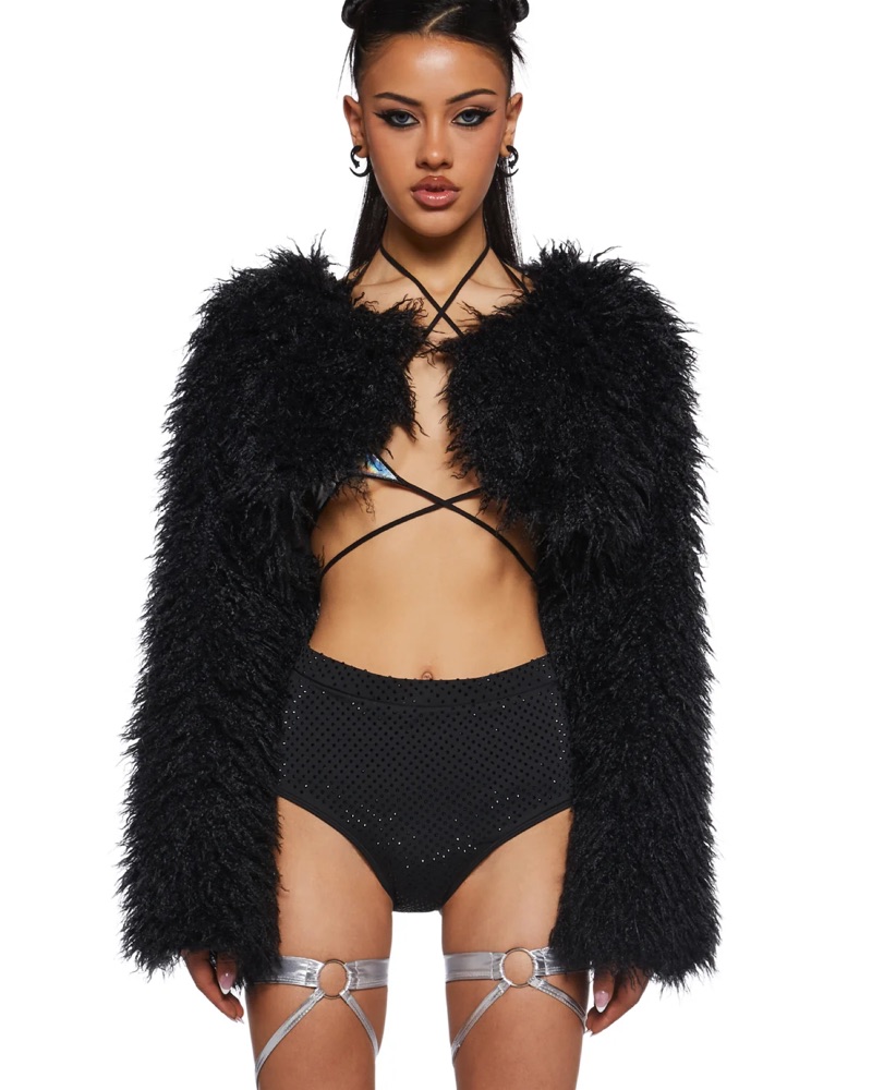 Black Cropped Fluffy Coat from dolls kill. Super cute with any outfit
