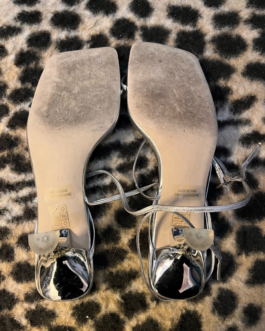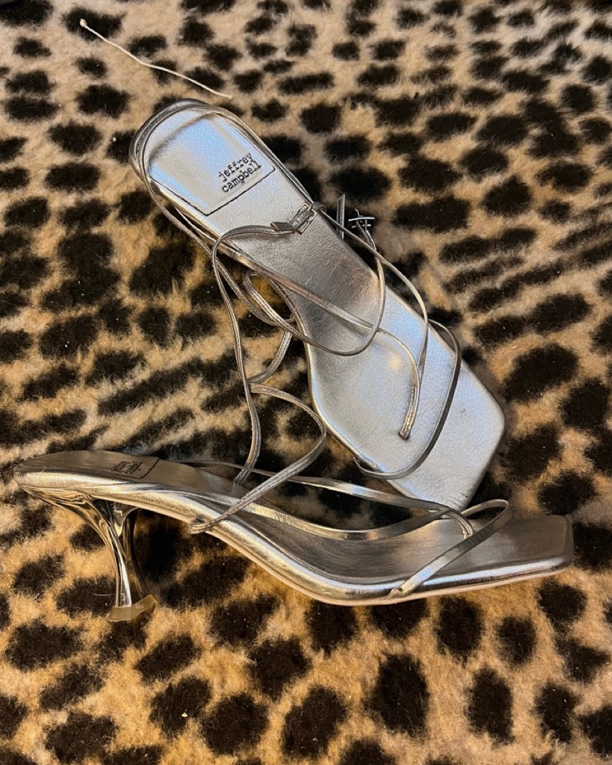 cutie silver strappy kitten heel sandals by jeffrey campbell. fit size 10.5/11 (: