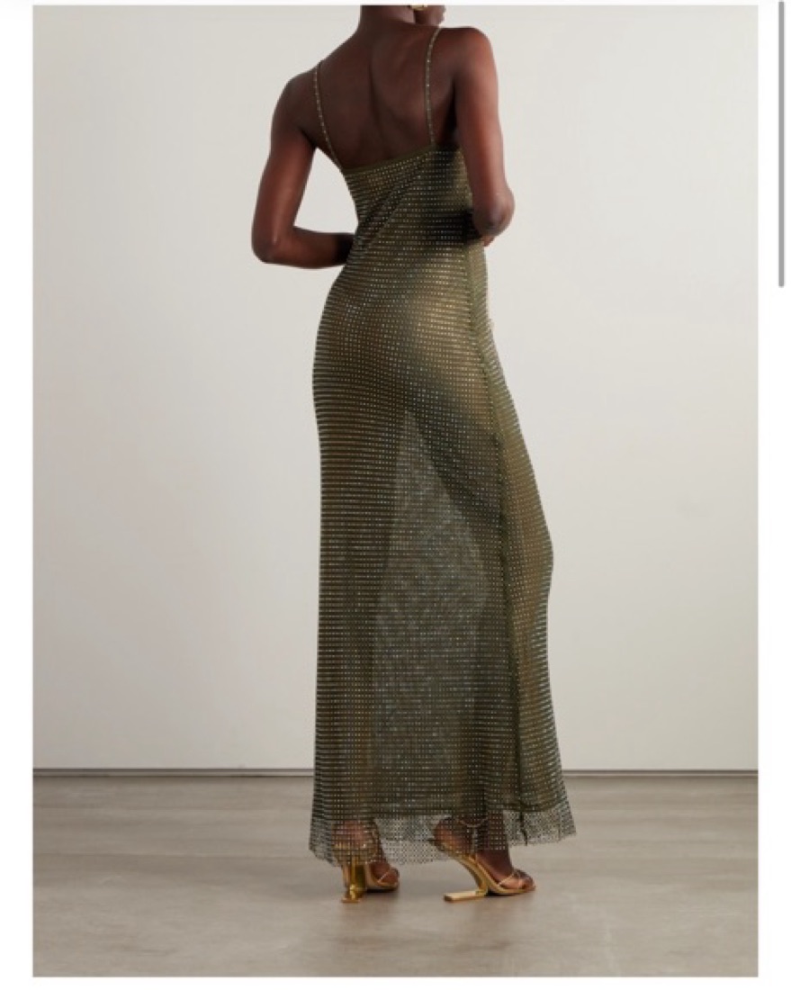 Self Portrait Crystal-Embellished Fishnet Gown / worn 1 time as shown / dark green