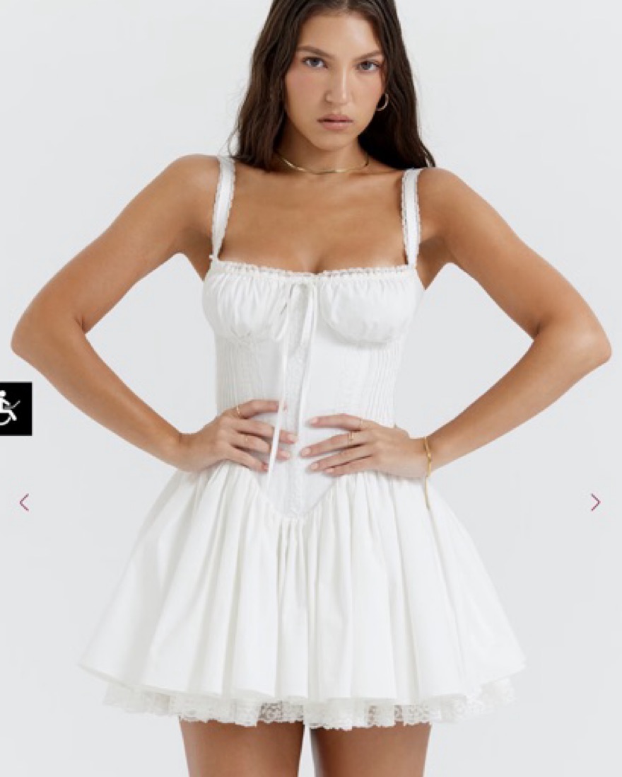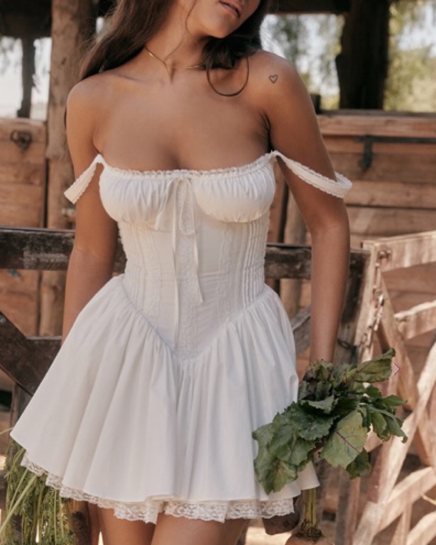 The romantic sweetheart neckline has gathered underwired cups and the pin tuck bodice features internal boning that cinches the waist. We love the pretty lace up back and the feminine vibe is finished with the lace edged lining.