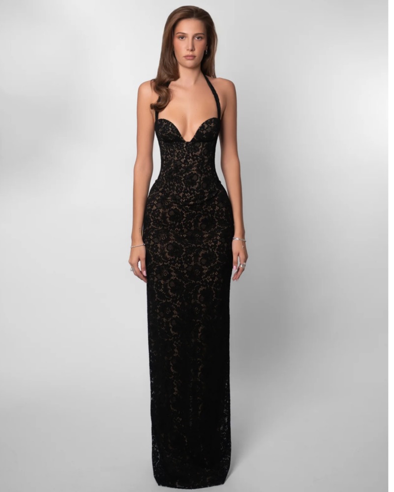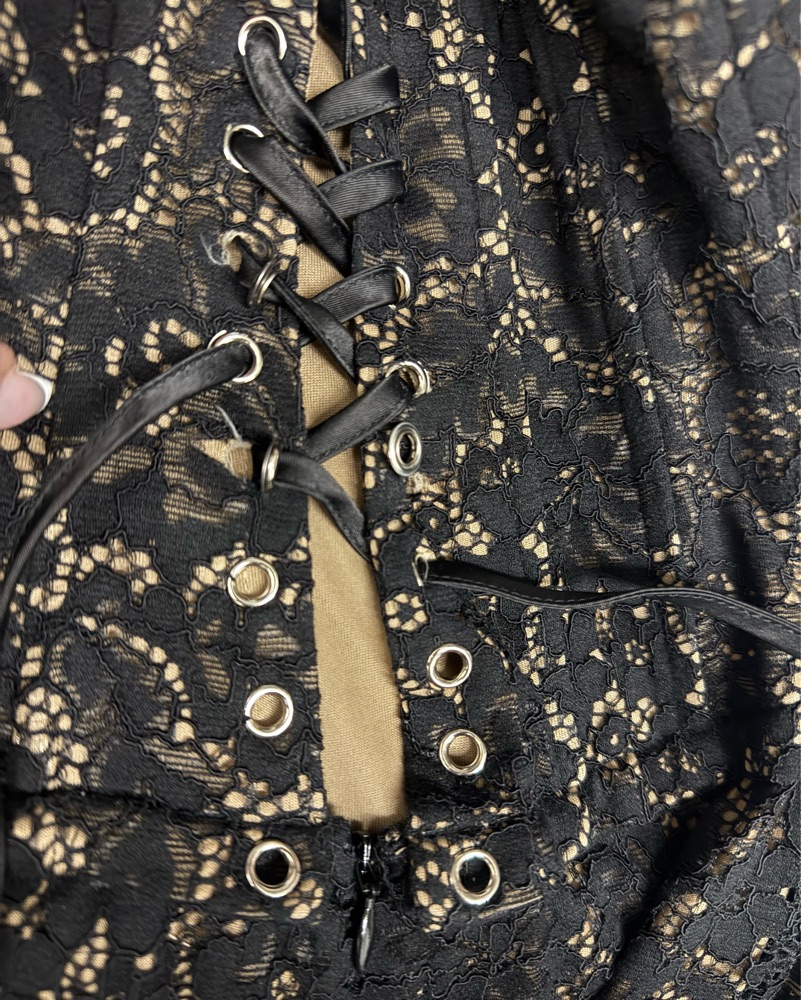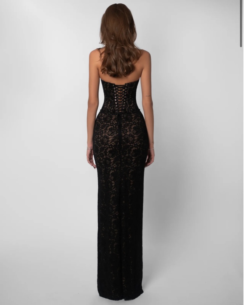 Crafted in black lace with full lining, structured boning, and a corset back for a snatched fit.