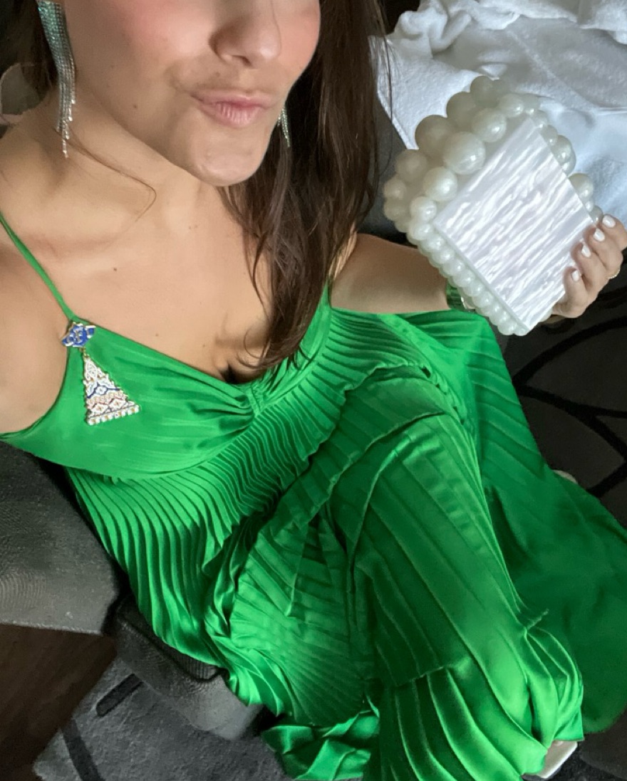 Green Pleated Gown