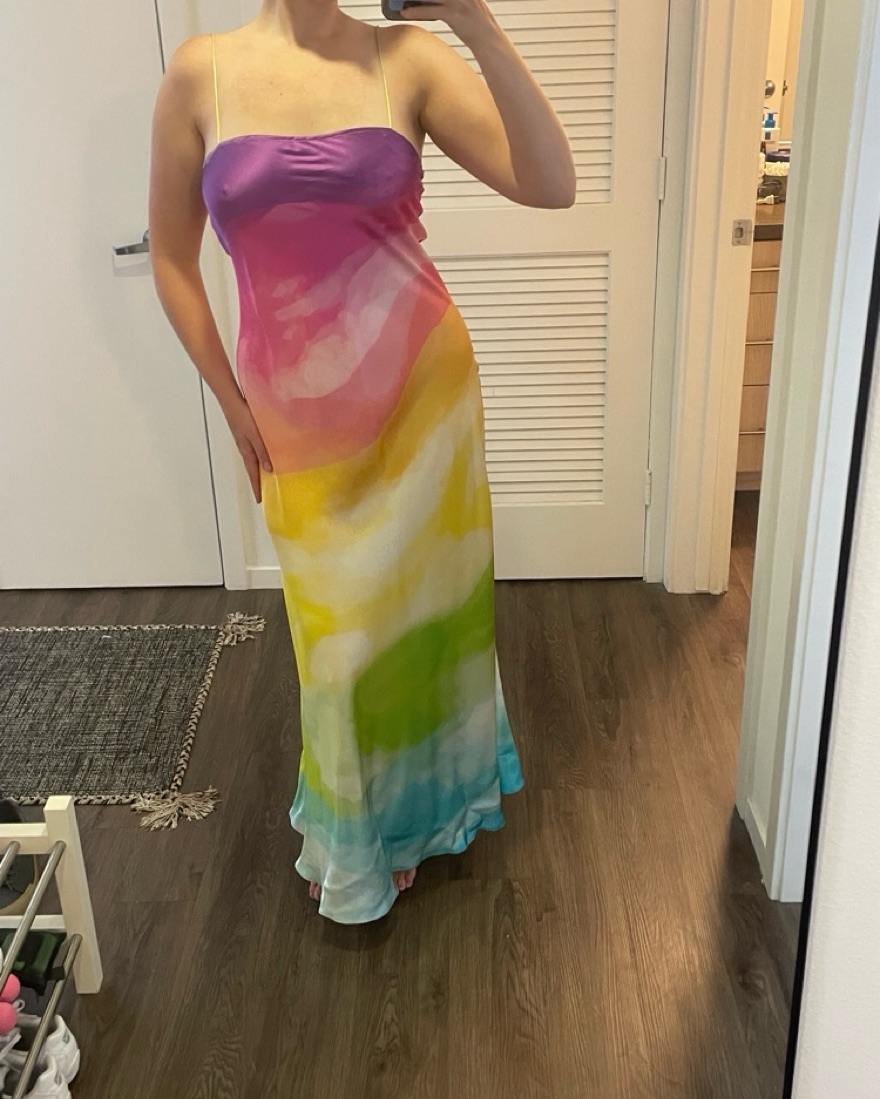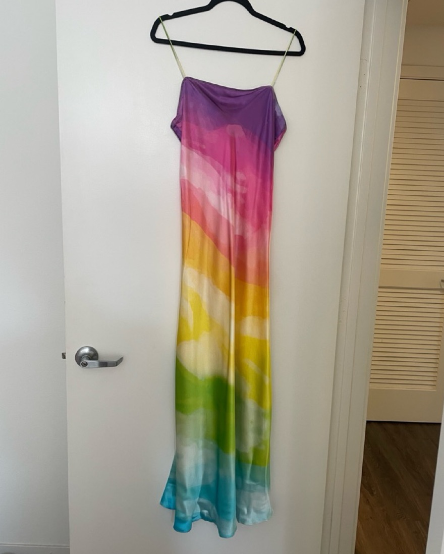 Rainbow 100% silk dress by Rococo Sand. Size M, fits like a size 6-8. Fully lined.
