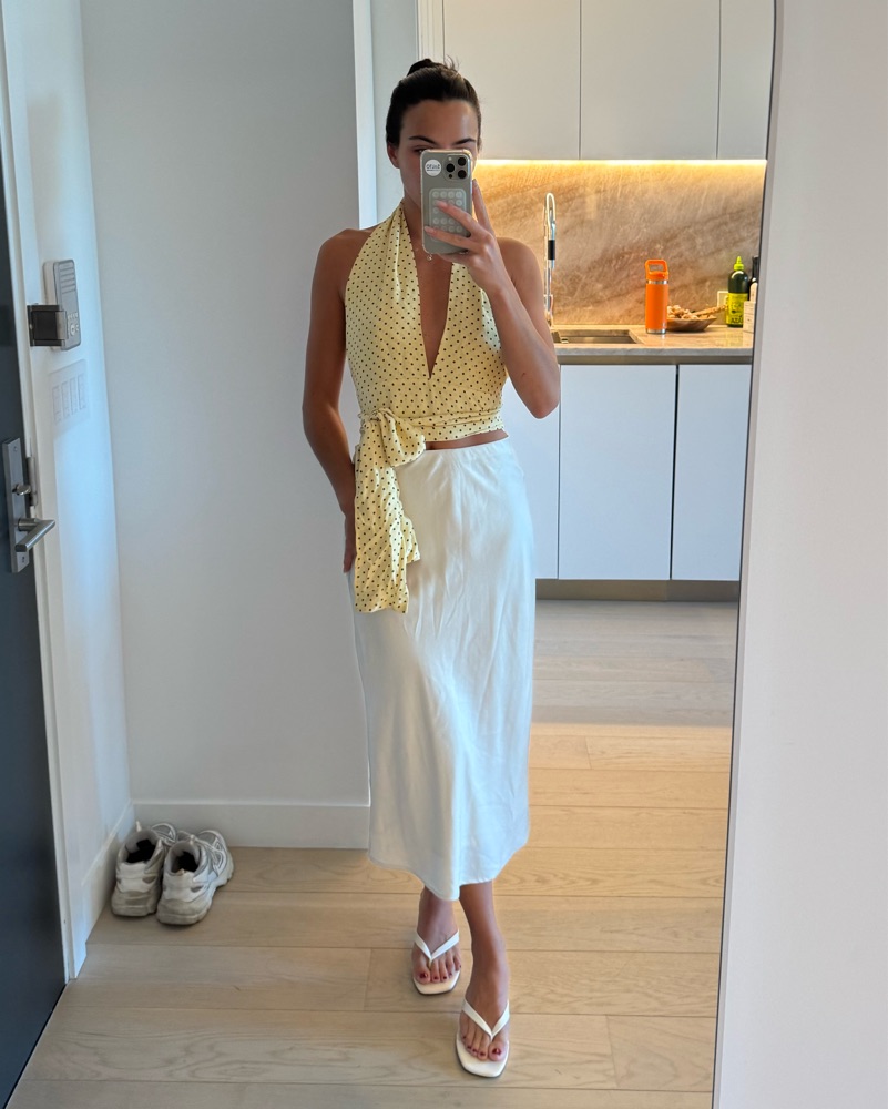 With Jean Rendezvous Top | Yellow Polka Dot