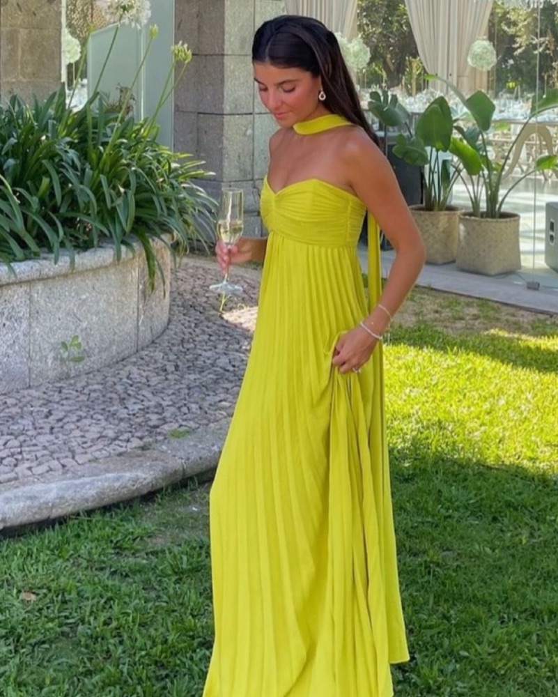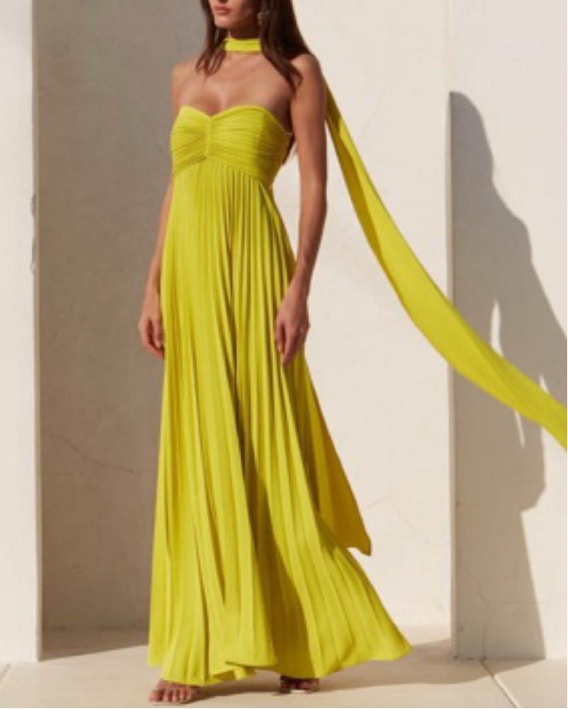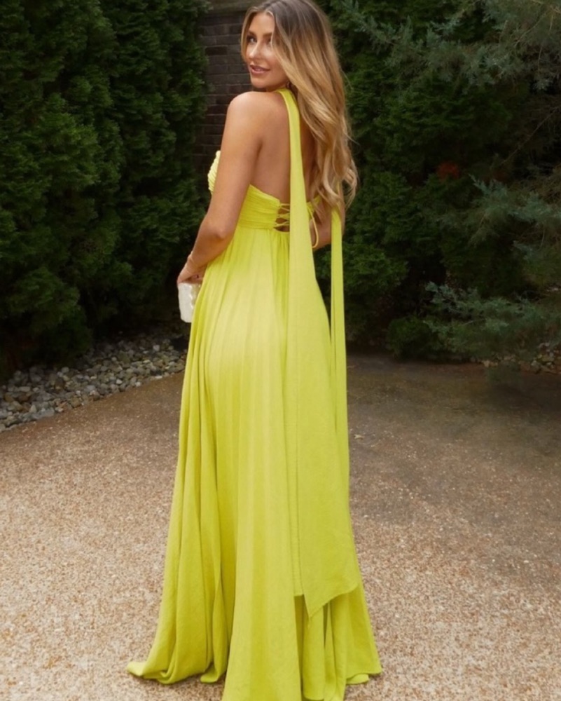 Delfi Collective Daphne Dress in chartreuse color. Size L. Perfect wedding guest dress!! Could also be wors for as a size M. The back has adjustable straps. **PLEASE RETURN ITEMS CLEANED** DRY CLEAN ONLY