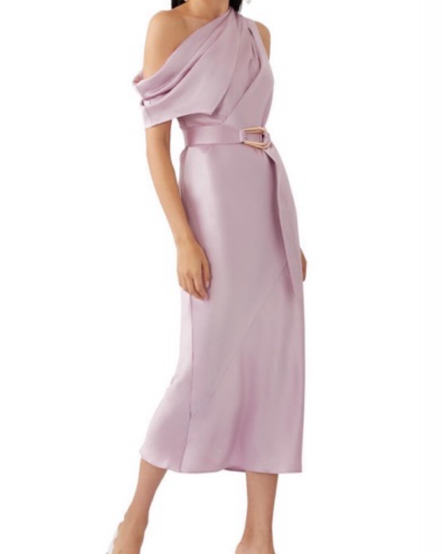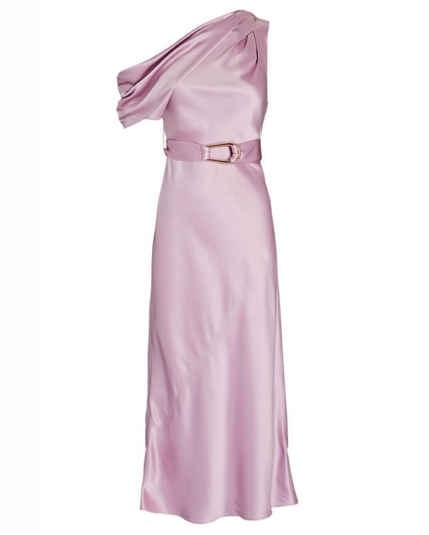 Pink one shoulder maxi with belt detail