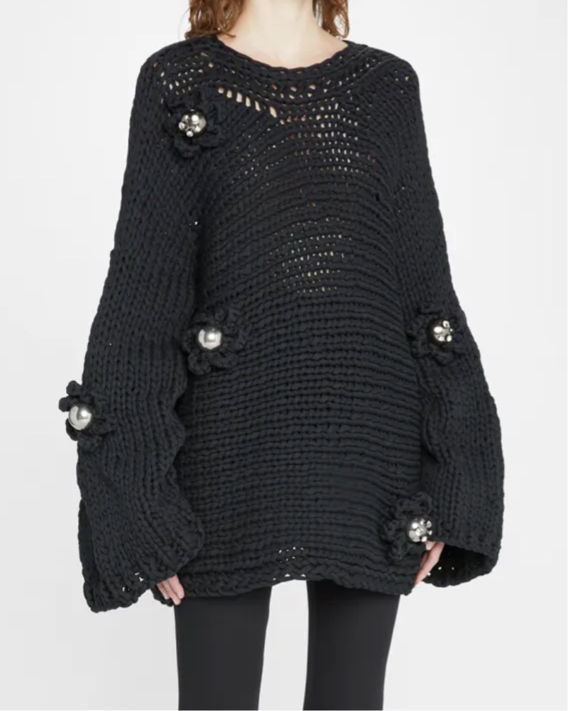 This cozy and stylish knit sweater is perfect for a night out or a casual weekend brunch. The oversized silhouette and unique textured detailing add an elevated touch.