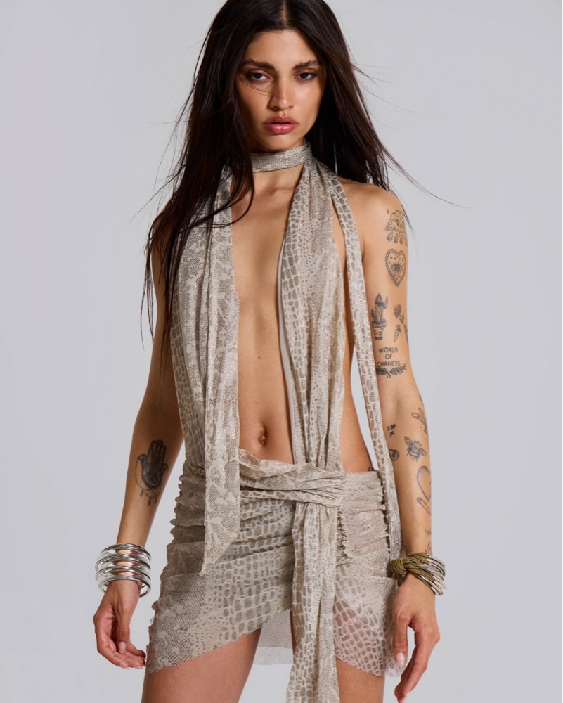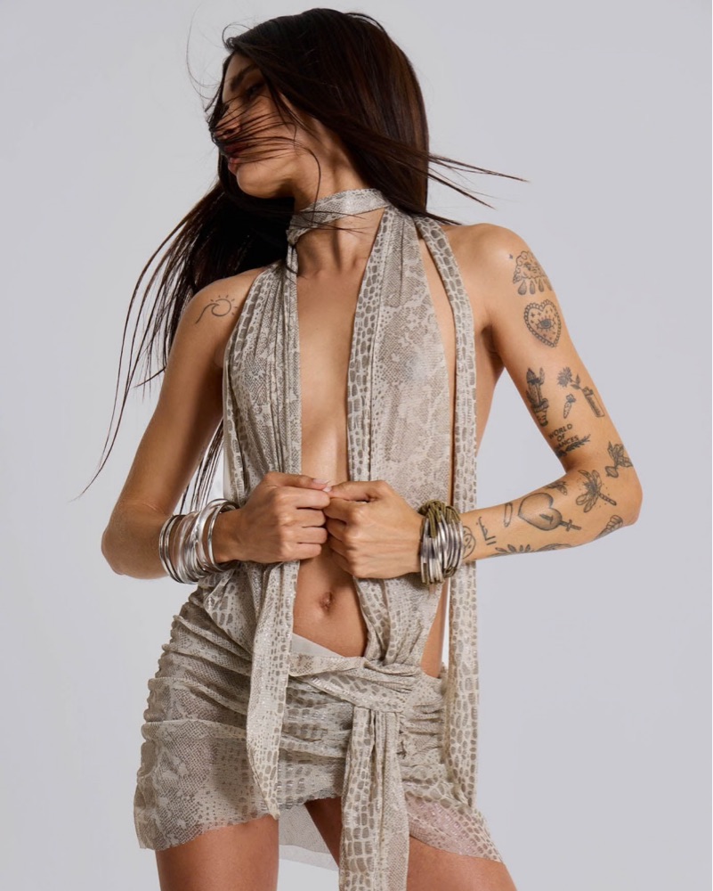 JADEDLDN Python Plunge Mini Dress