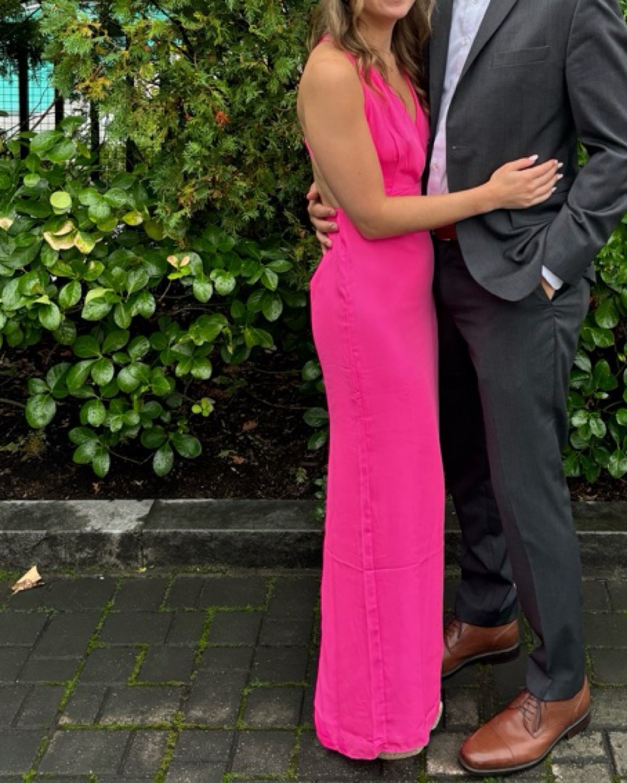 Gorgeous hot pink maxi dress with a deep neck and open strappy back. Purchased from Revolve and only worn once! Fits a size small / 4. Perfect for a spring, summer or destination wedding.
