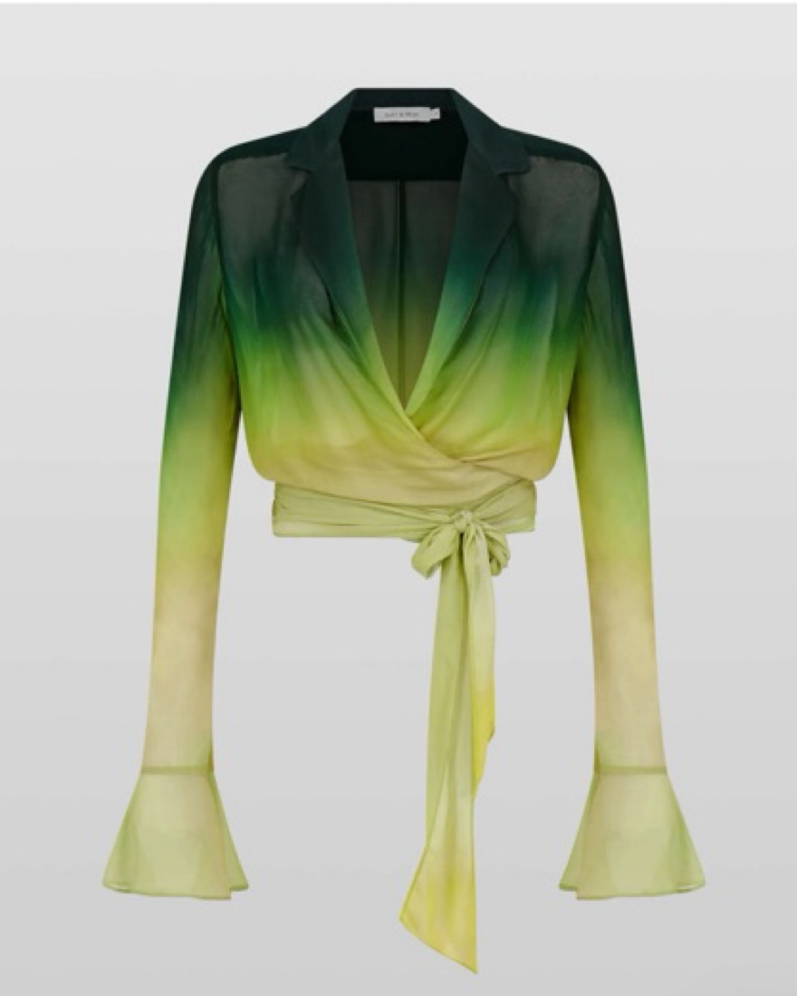 Green gradient wrap top! Slightly sheer. Renting separately or as a set in a different listing.