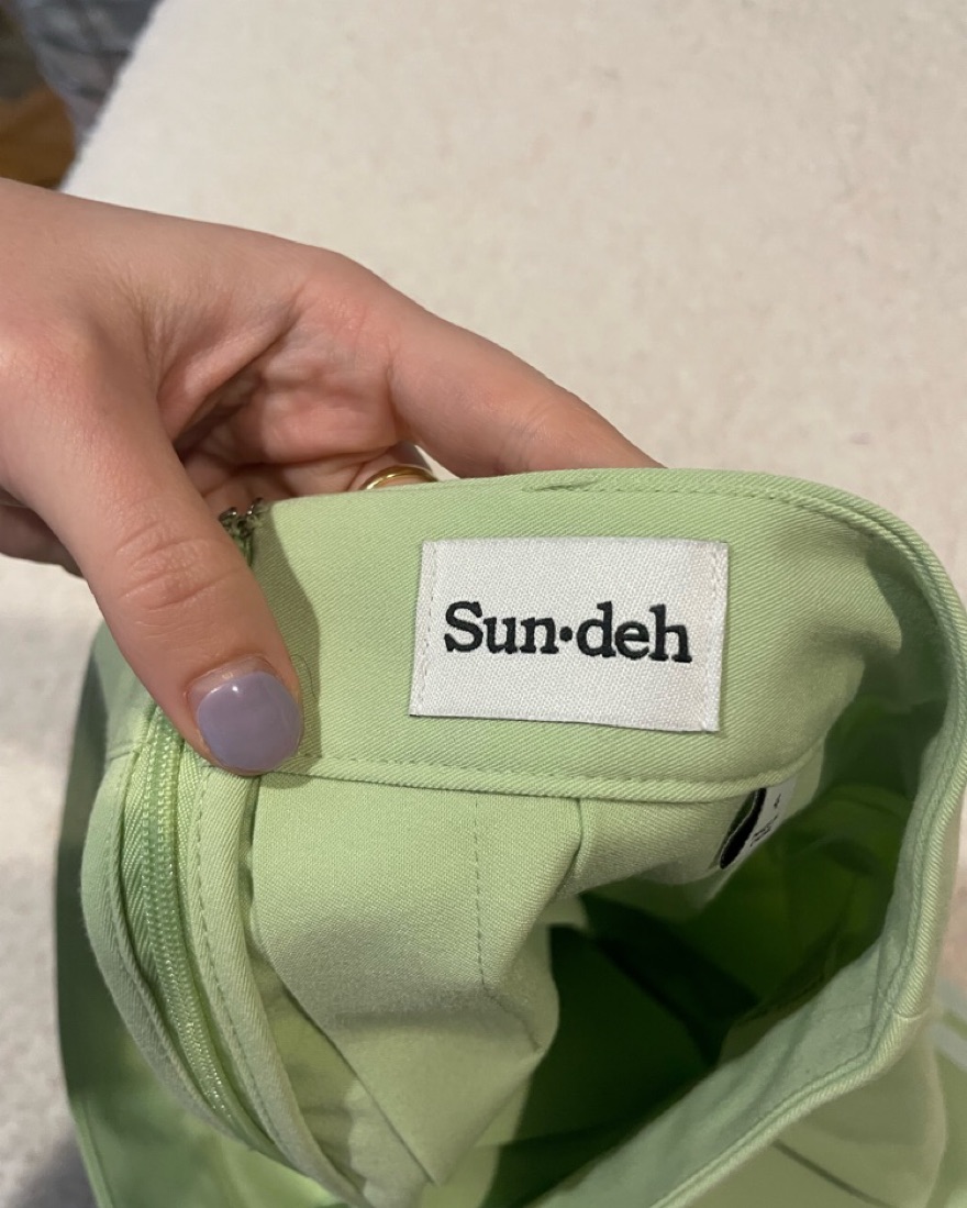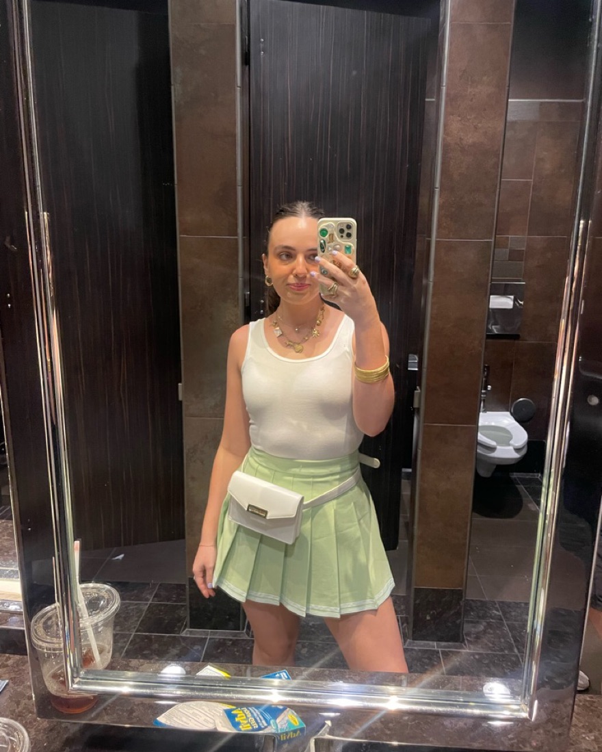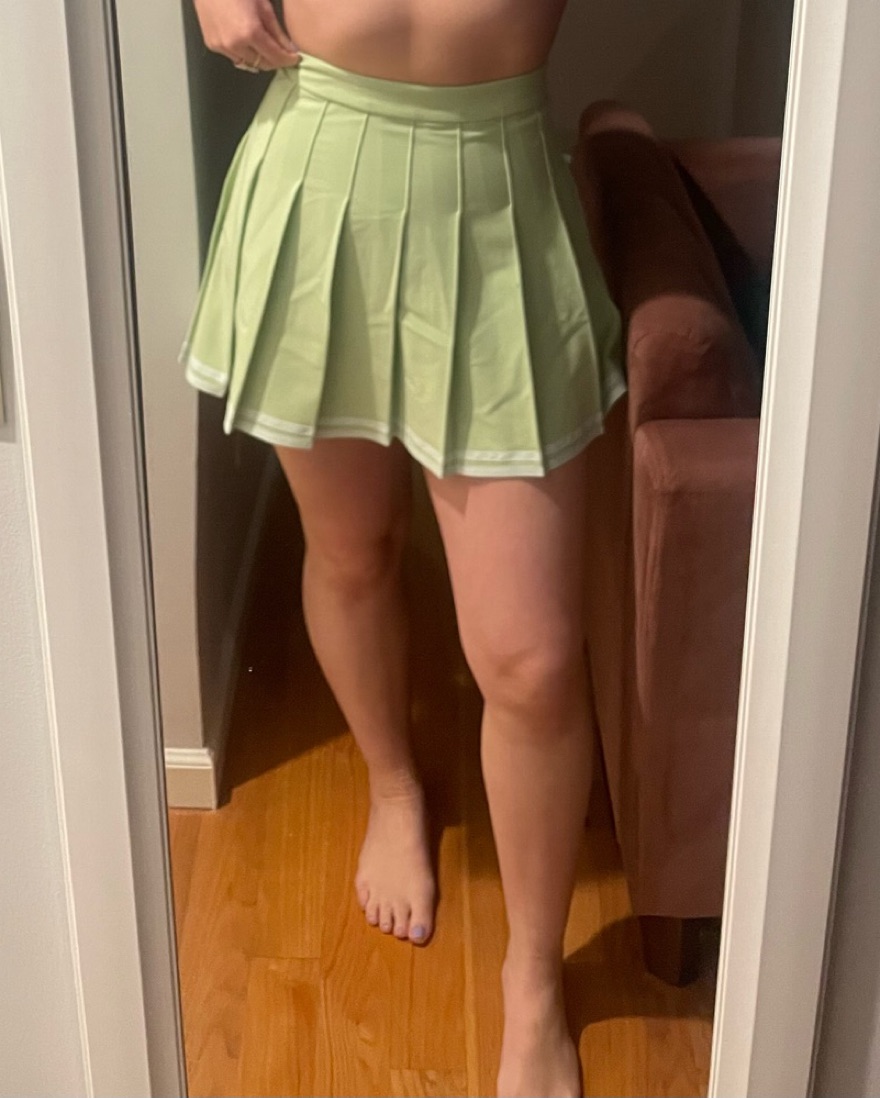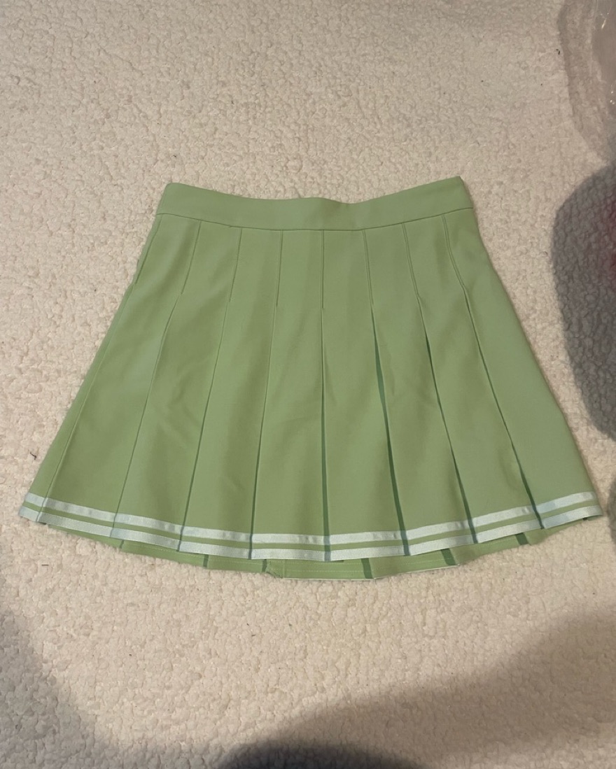 Light green pleated cheerleader skirt. Great for a brunch outfit!