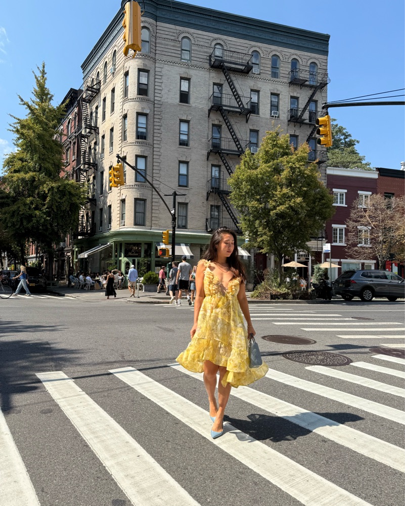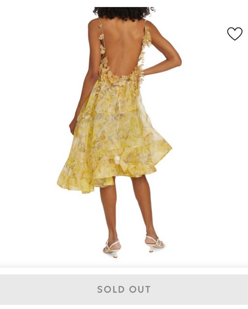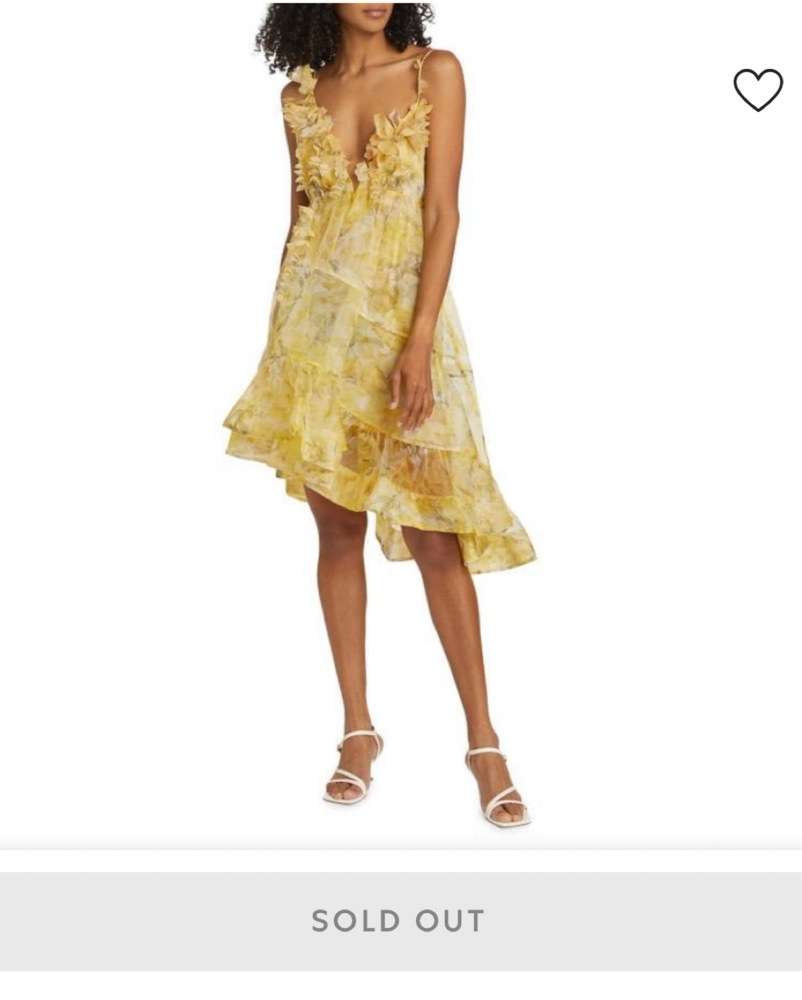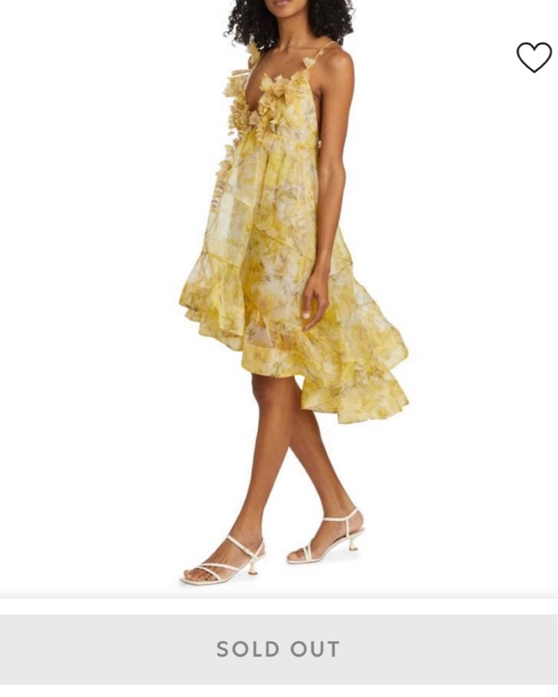 From Zimmermann’s 2024 RTW runway collection- beautiful yellow floral asymmetrical dress with the most delicate and beautiful 3d flower details ✨💖