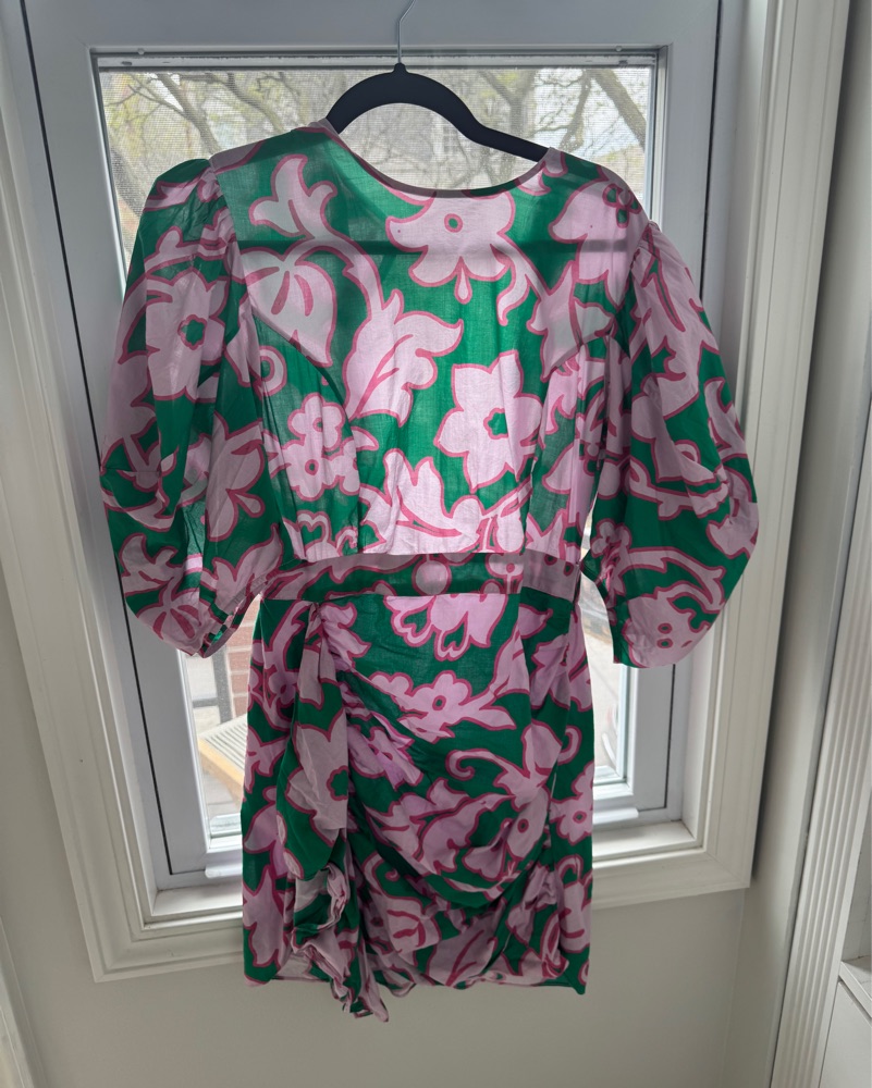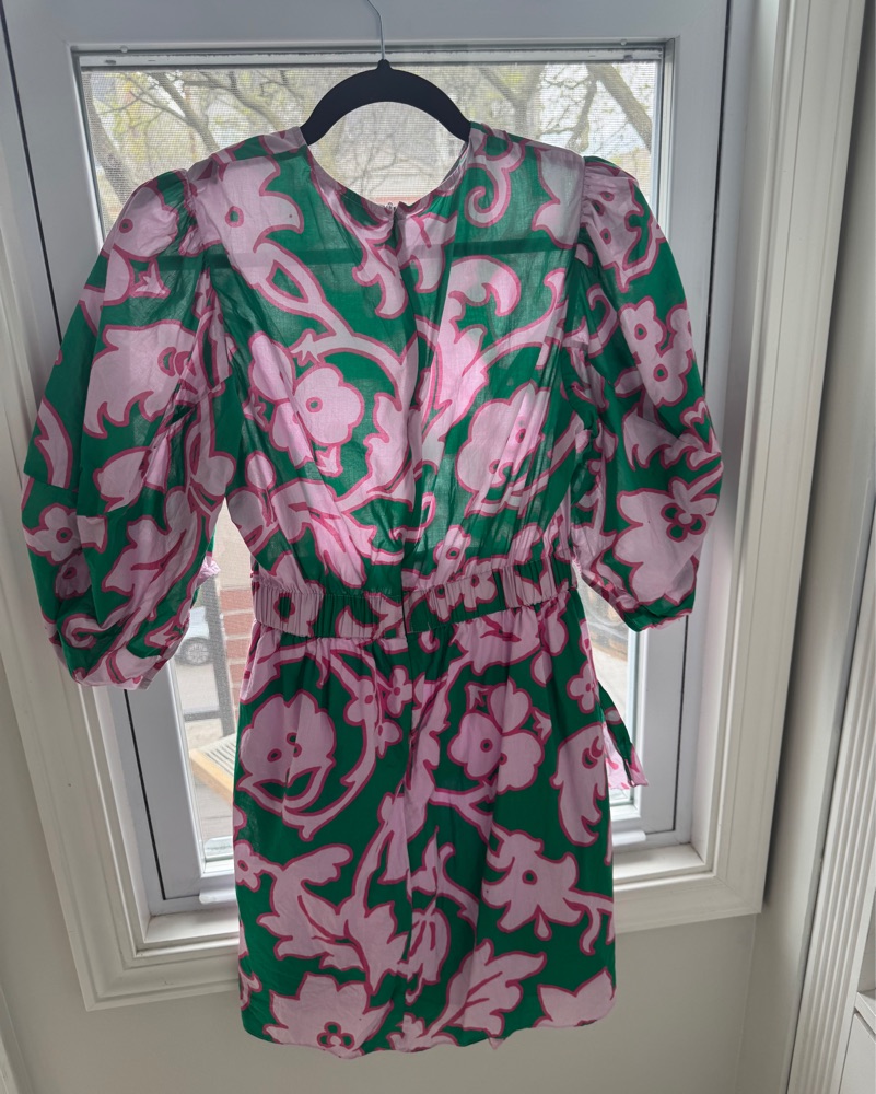 Cotton dress with puff sleeves and a ruffle. Really flattering!