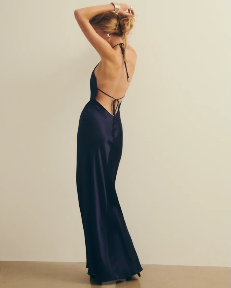 Reformation Jeany Silk Dress in Navy