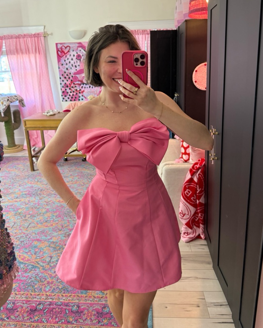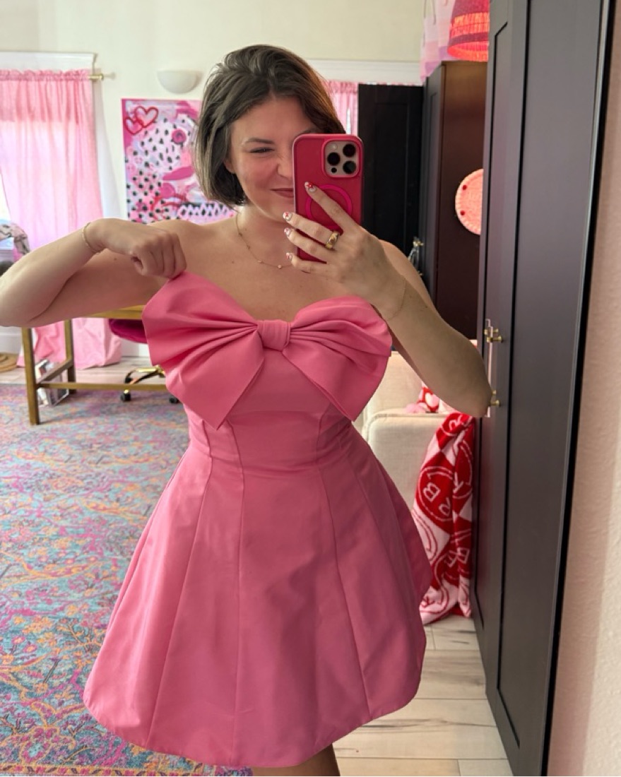 Pink Bow Mini Dress by Mac Duggal - Pickle