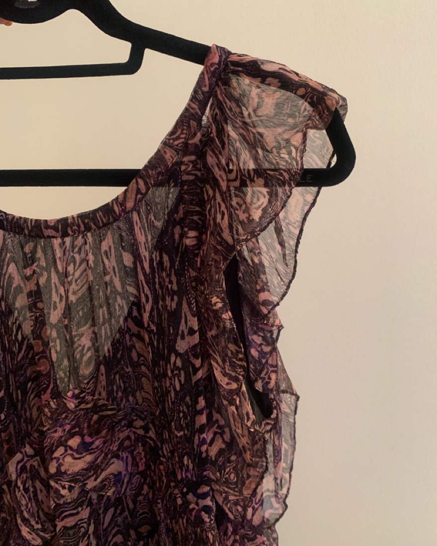 Feminine mini dress from IRO with ruffle details., 100% Viscose. Size 34 (size 6 US).