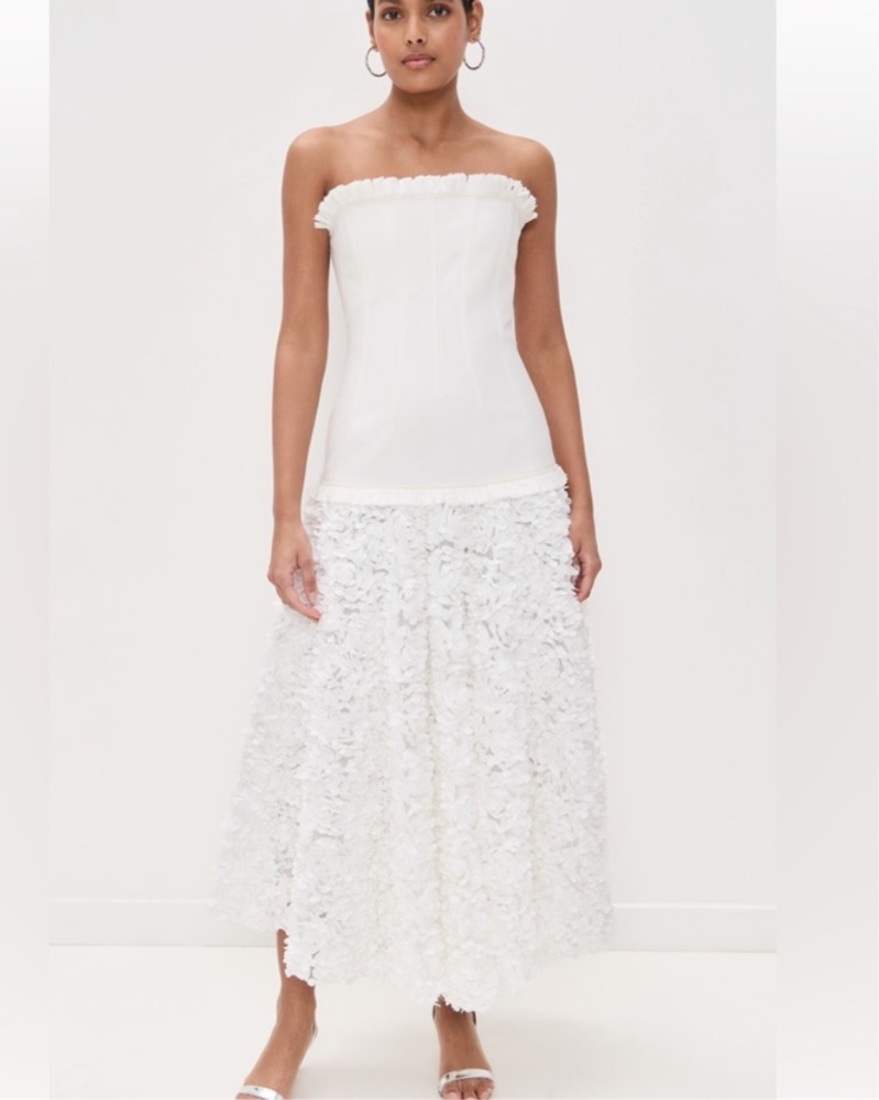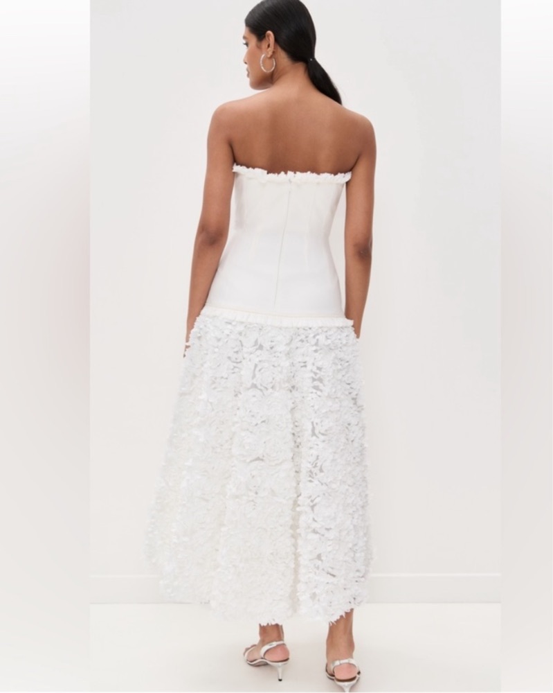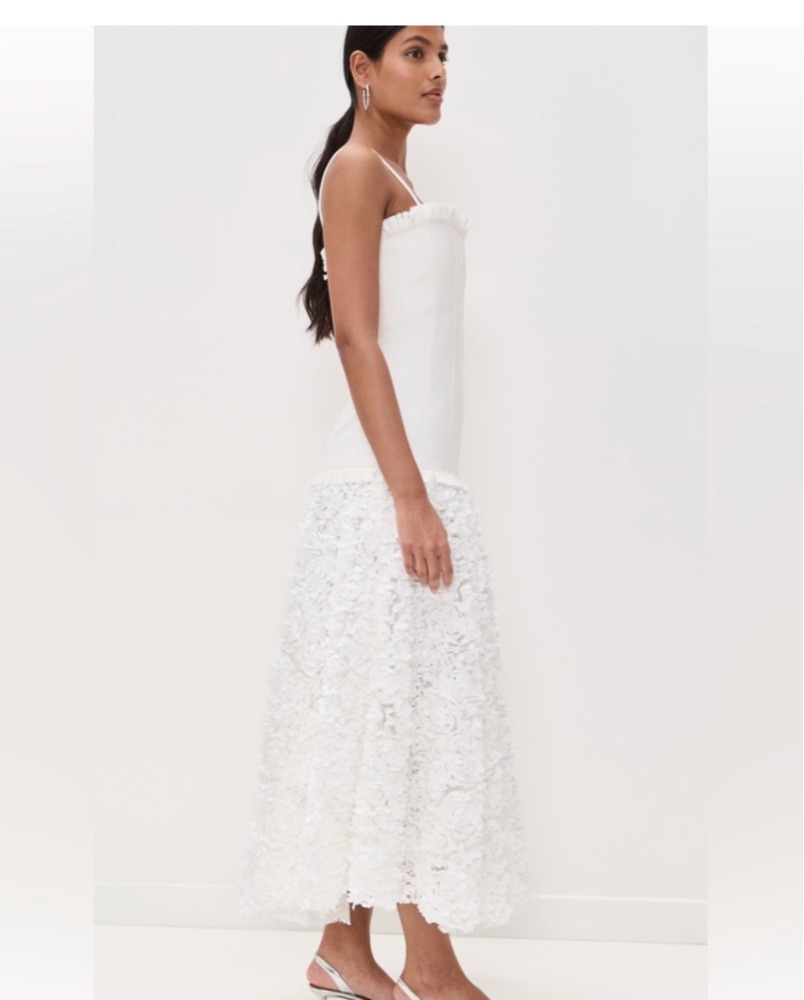 This Alexis MAITLAND dress is brand new and has never been worn. I’m 5’4” and had the waist shortened hemmed slightly, as the original torso length was too long on me. The dress still maintains its drop-waist silhouette.