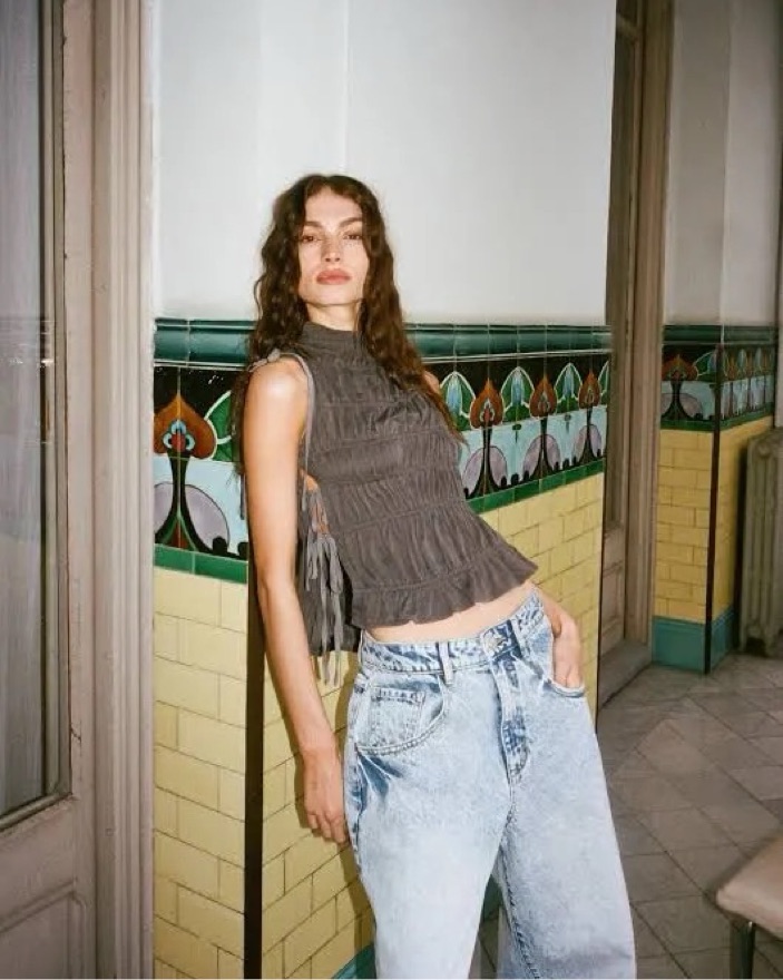 The Remie Top is a slim fit, high neck (mock neck) top, featuring ruching details throughout and open sides with ties. Adjustable for bust size and super flattering!