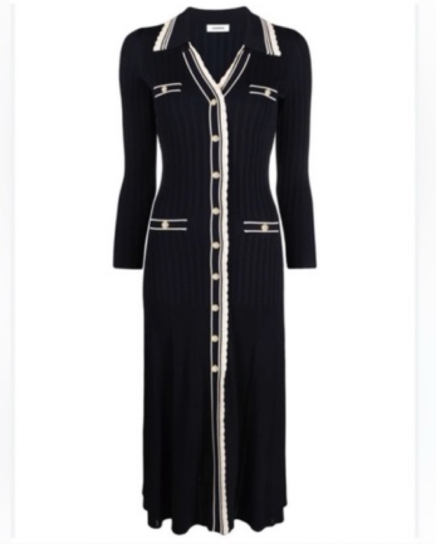 Very flattering with heavier material. Great condition. Good for work, dinner, daytime, super versatile. Huge compliment winner. Sandro calls this “maxi” but its more like midi in my opinion.