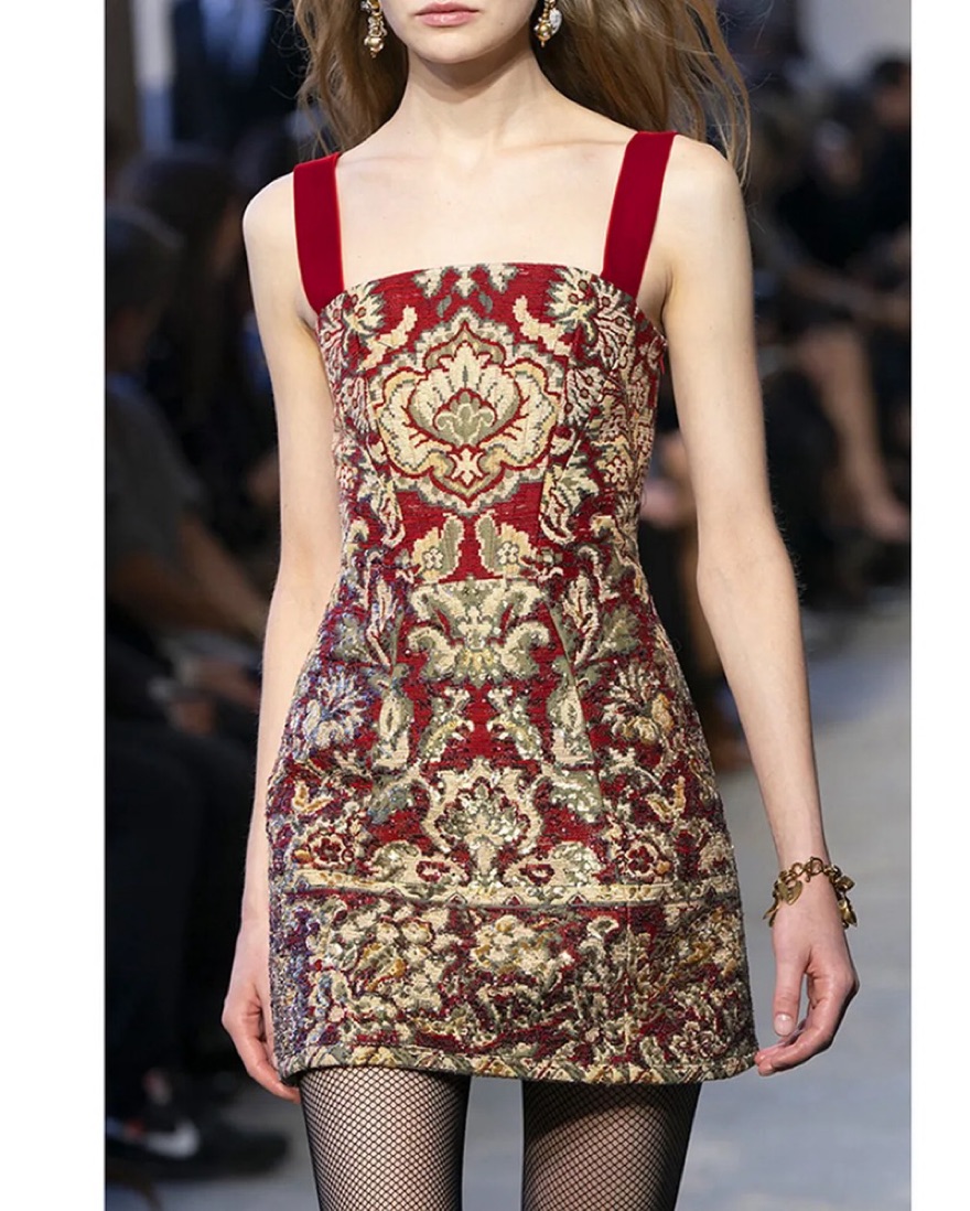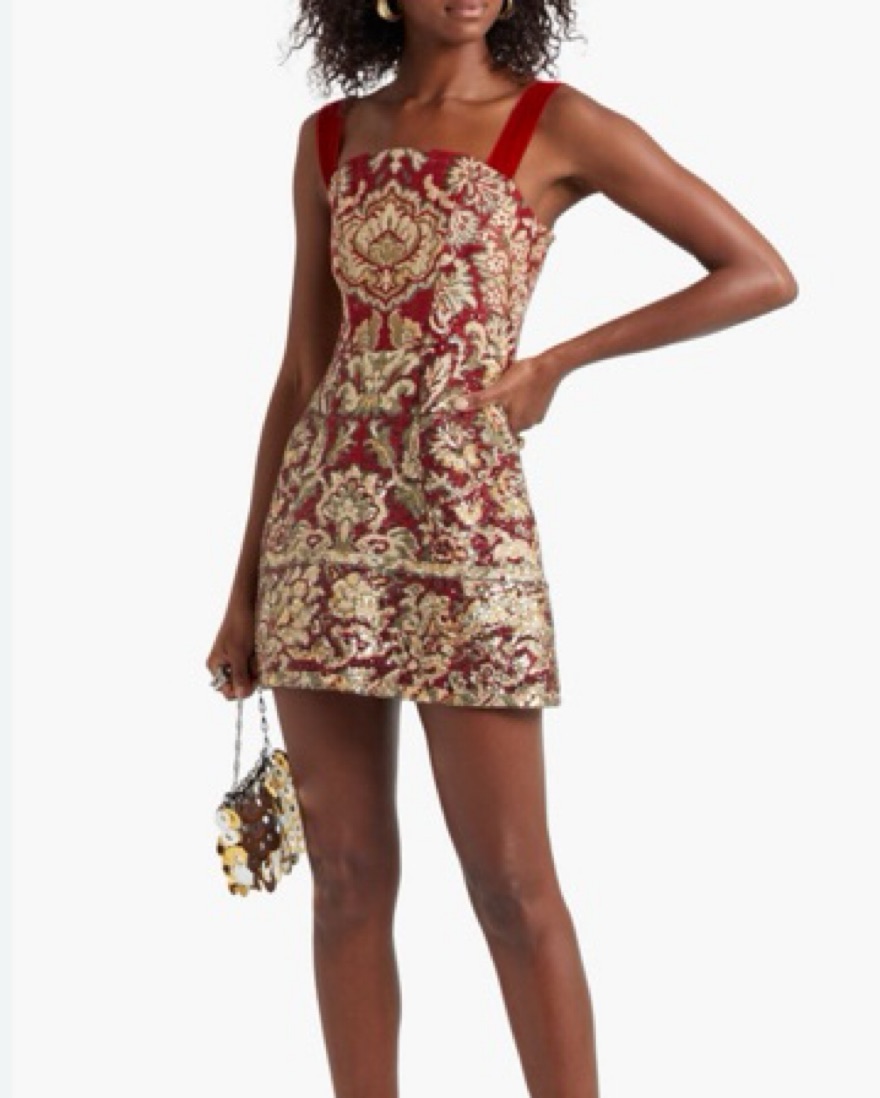 Red Brocade Mini Dress With Sequins by Etro - Pickle
