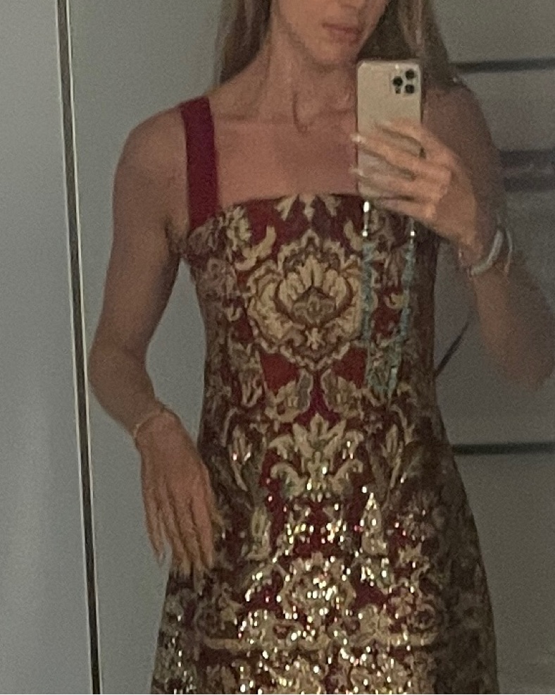 Etro Brocade Rich Gold and Red Corset Mini Dress F/W 2019 Runway Collection Italian size - 44 Metallic Paisley and French Delicate Lace Print Brocade Fabric, Internal Boning, Lace-Up Back, Velvet Shoulder Straps, Fully Lined