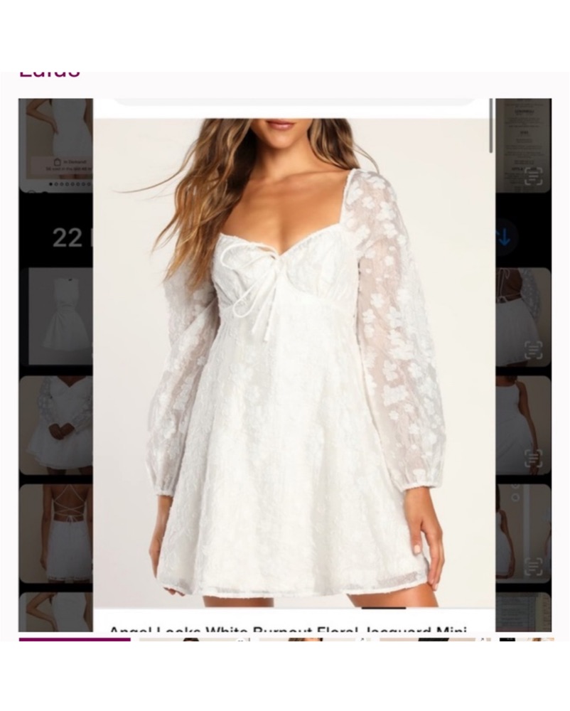 This romantic and feminine white mini dress is perfect for a special occasion or a night out. The delicate lace and puffed sleeves add a touch of elegance.
