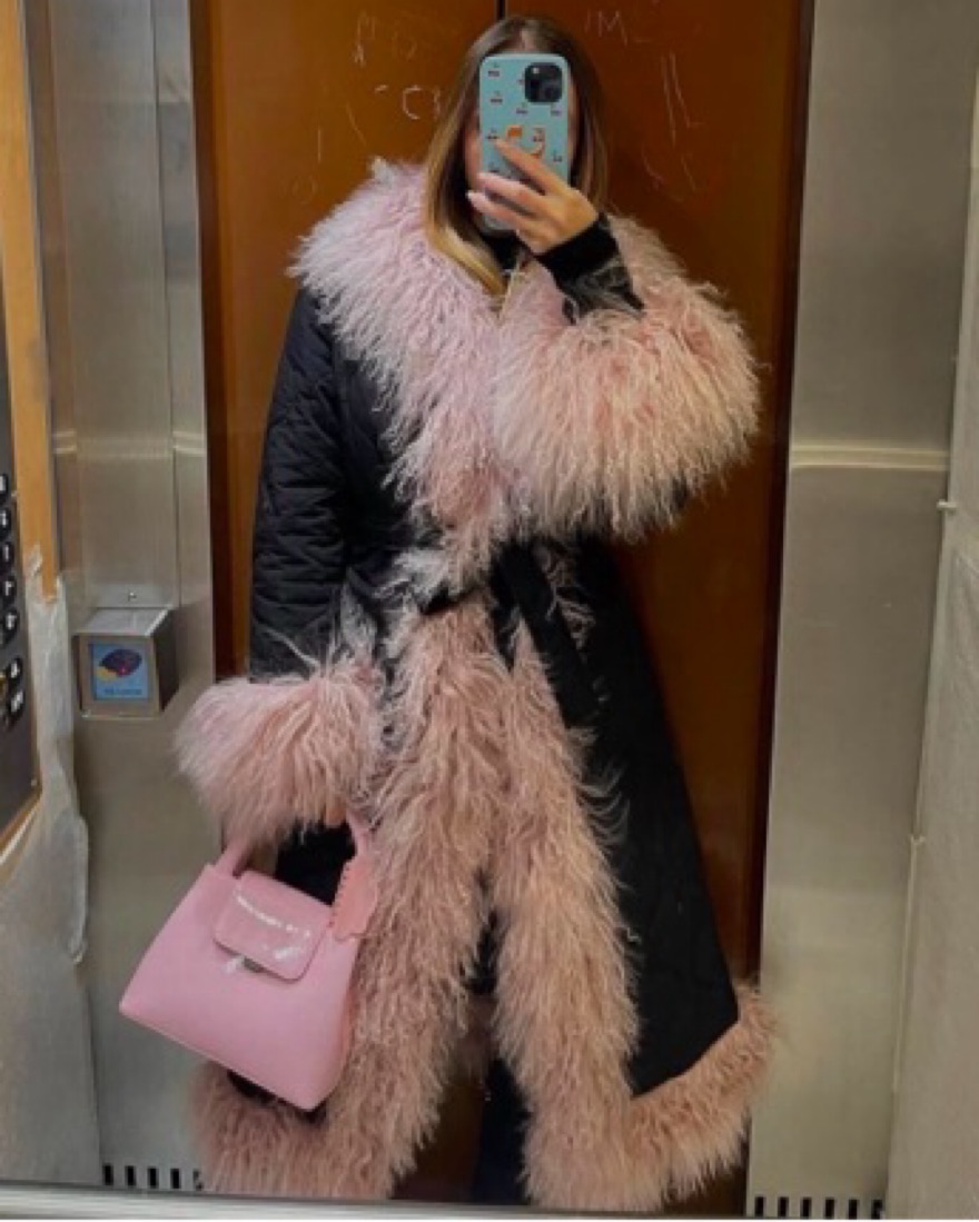 This luxurious fur coat is perfect for adding a touch of glamour to any winter outfit. The voluminous silhouette and soft, cozy material make it ideal for dressing up or down. As seen on Dua Lipa, this is a limited edition nylon and Mongolian fur is fab. This is NWT