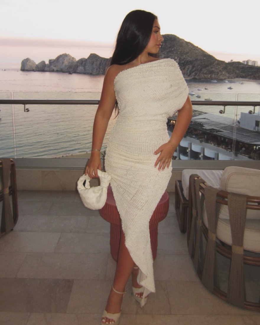 Size Small. has small ruffles. so comfy perfect for vacation. Completely Sold Out