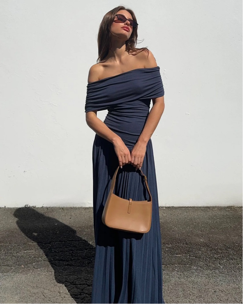 Lioness Off-Shoulder Pleated Maxi Dress