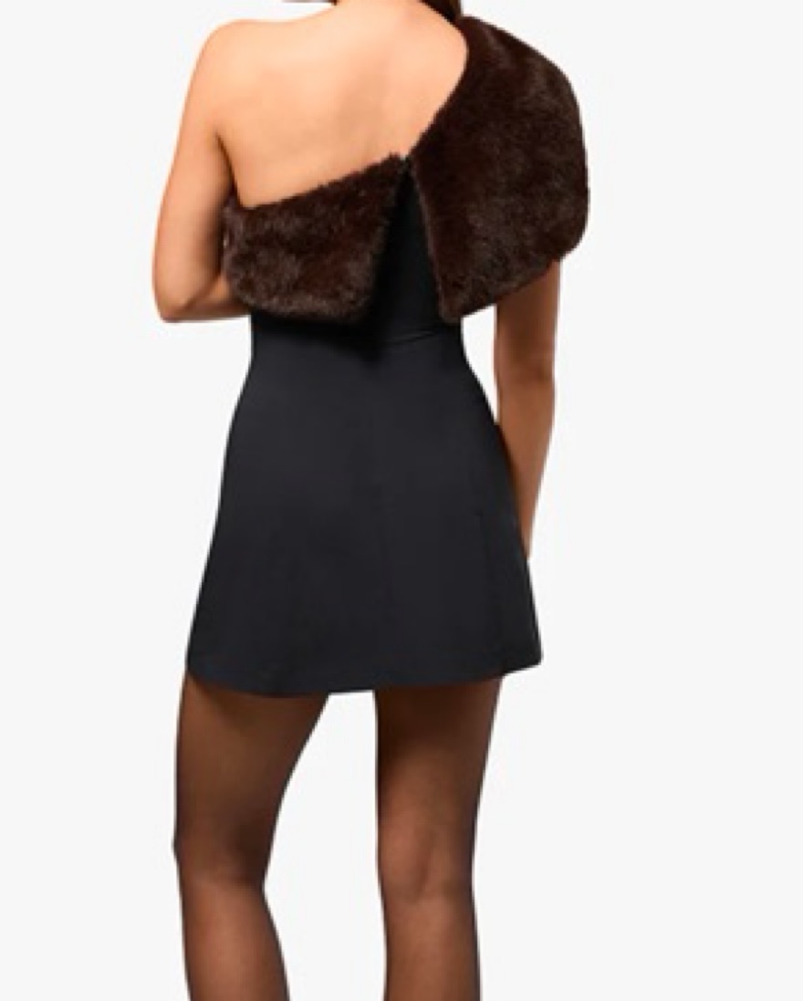 Cute black mini dress with fur trim, off the shoulder