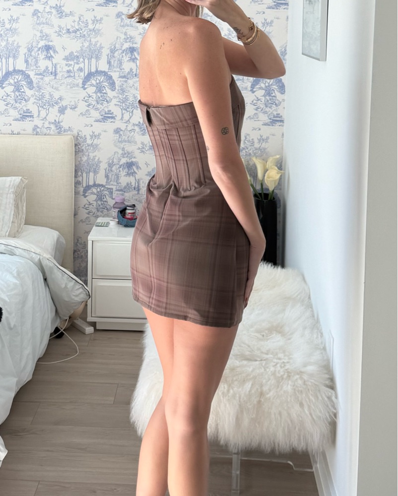 With Jean Brown Plaid Corset Dress
