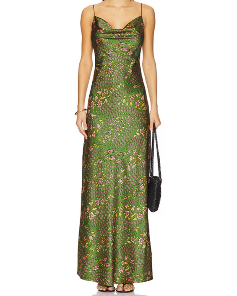 Got this dress in a size 4 and had the sides tailored slightly to bring in, fits anywhere from size 2-4 - I’m a 32B bust, 25 waist, 36 hip for reference! Color is lemongrass with a gorgeous floral print and I’ve worn it once to a wedding so it’s essentially new!