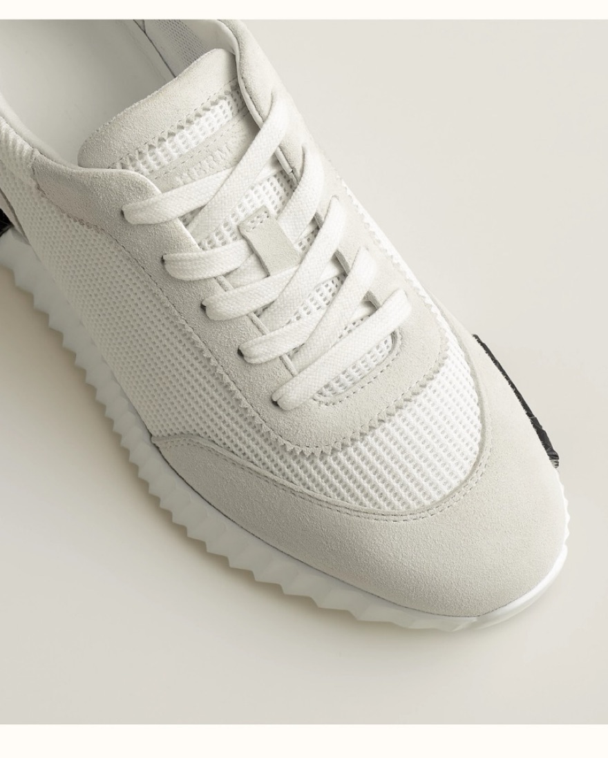 Beautiful brand new white Hermes Girl Next Door Sneakers. Sneaker in textured mesh and suede goatskin. Light sole with contrasting design for a versatile and modern look.