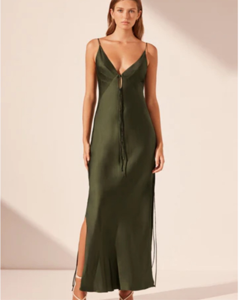 Forest green slip dress with ties on the sides. Perfect for fall weddings - only worn once.