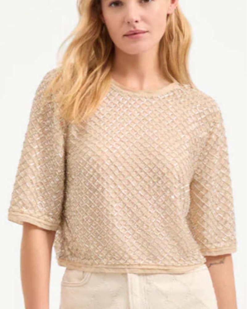 Featured in Vogue! This beaded cream top by Veronica Beard will make a statement. Dress it up or down. Wear it to the office/ work, a night out, dinners, casual outings. There is no limit to this shirt!