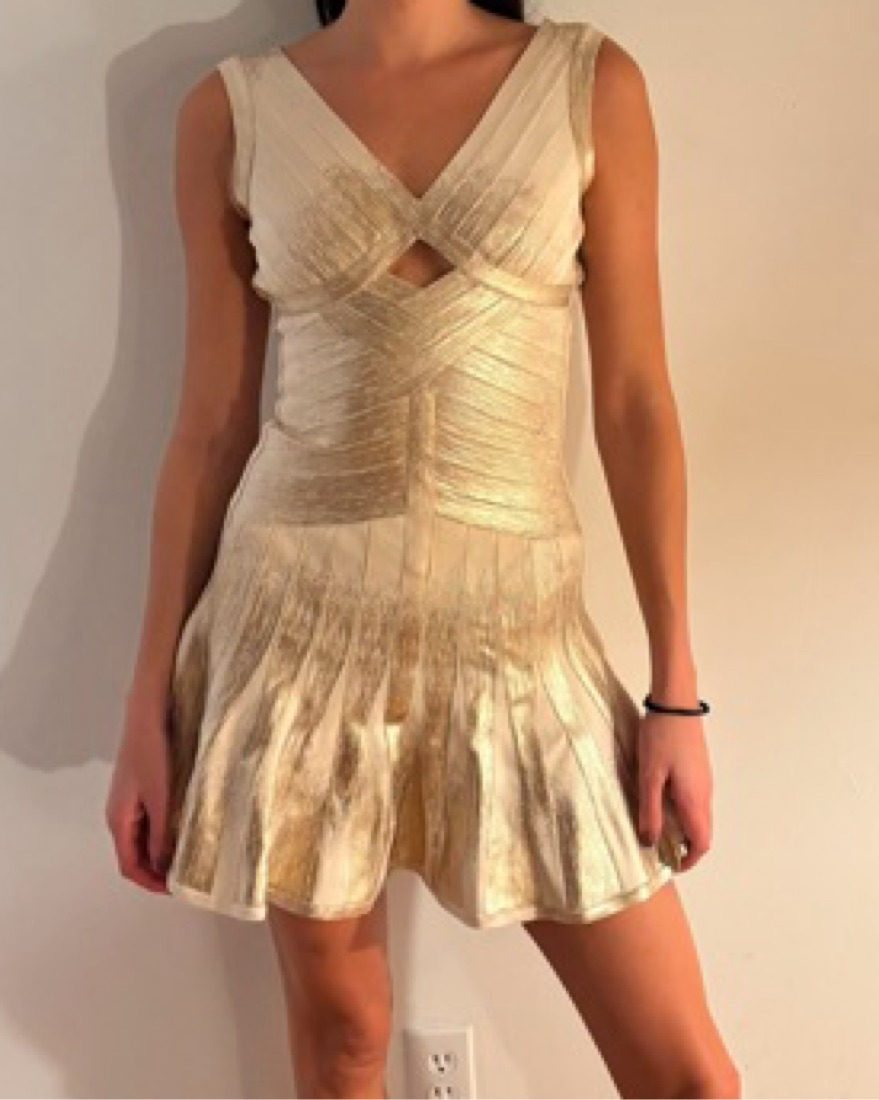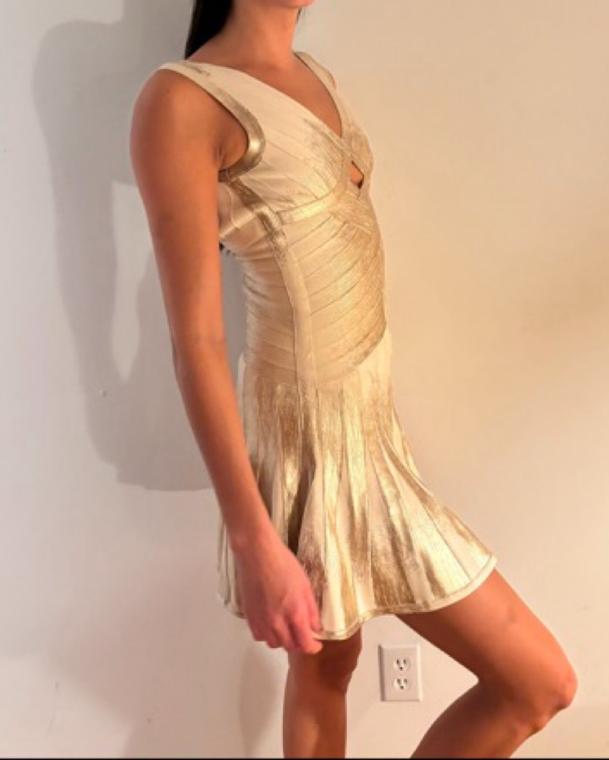 Herve Leger Gold Dress short with pleating