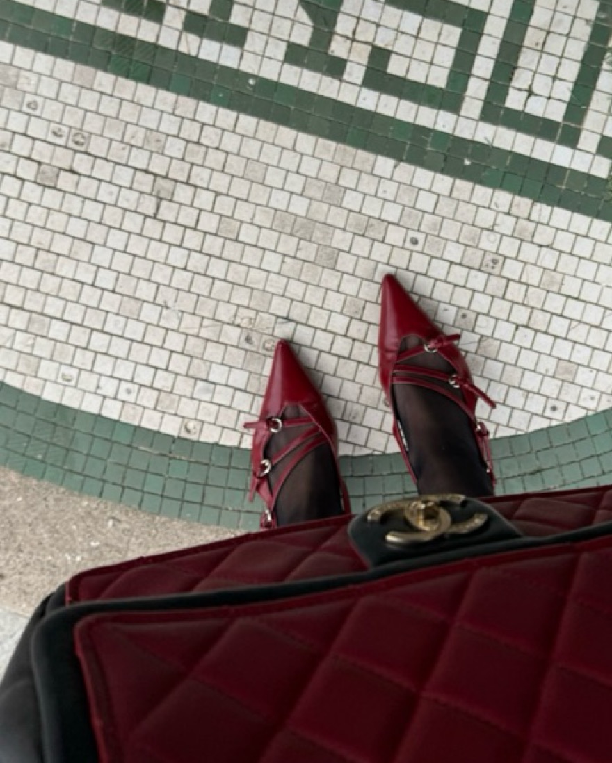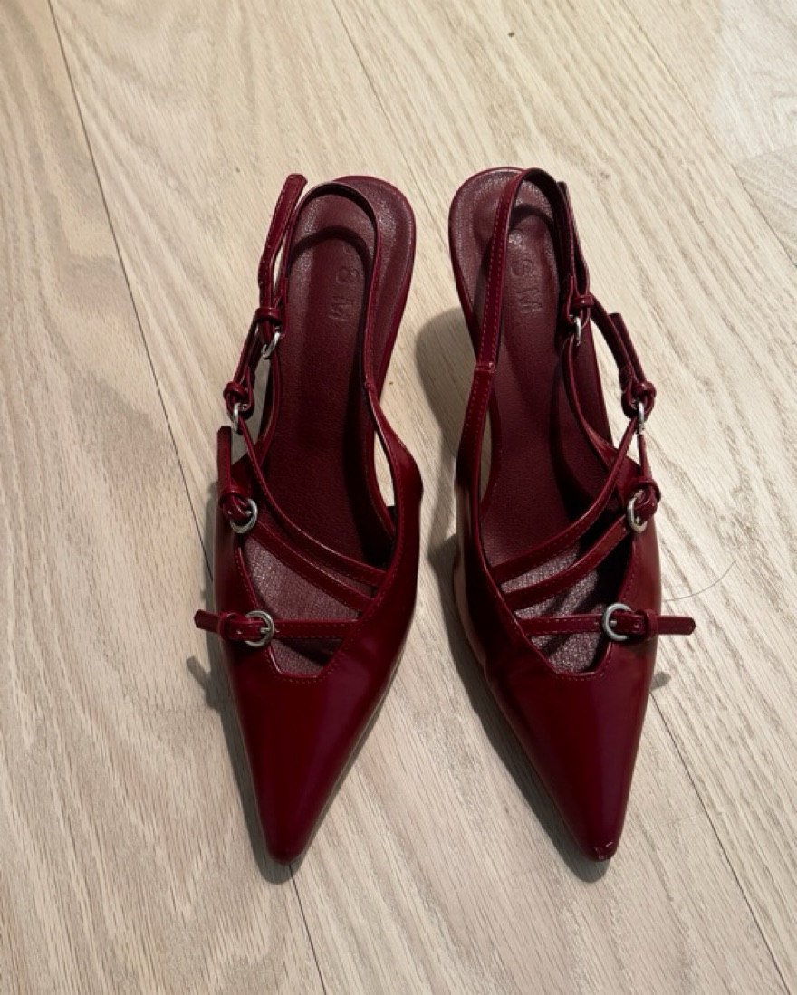 These stylish red pumps are perfect from day to night. Purchased from Shop Peche. Very similar to Miu Miu style slingbacks. Size 8