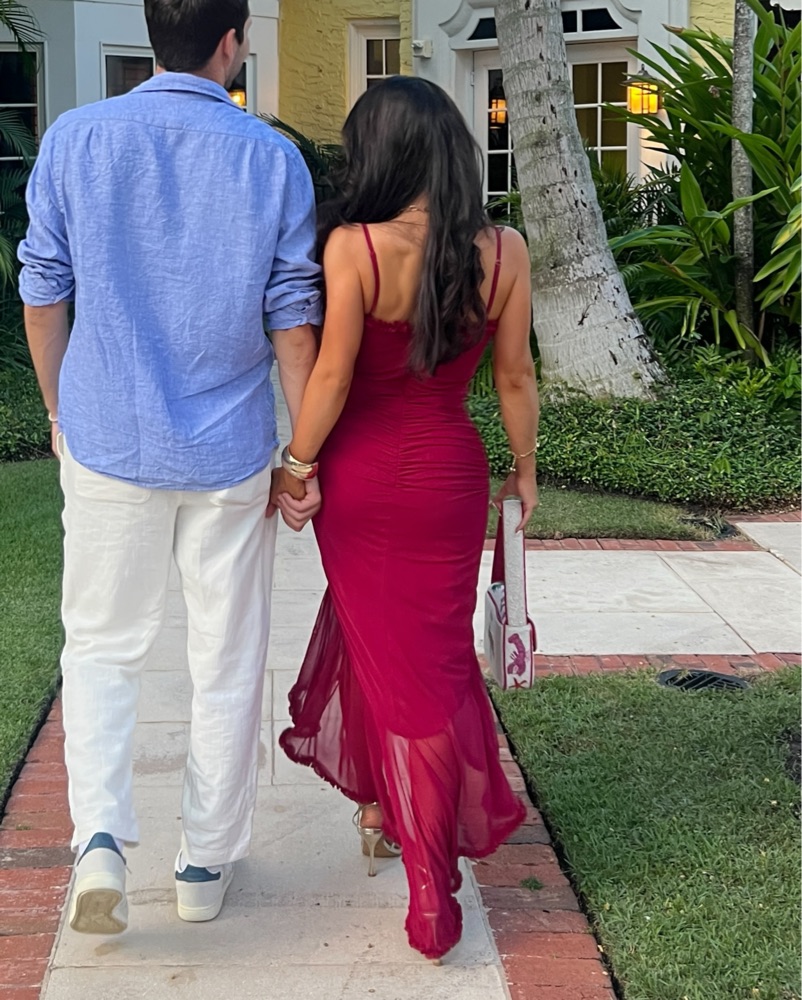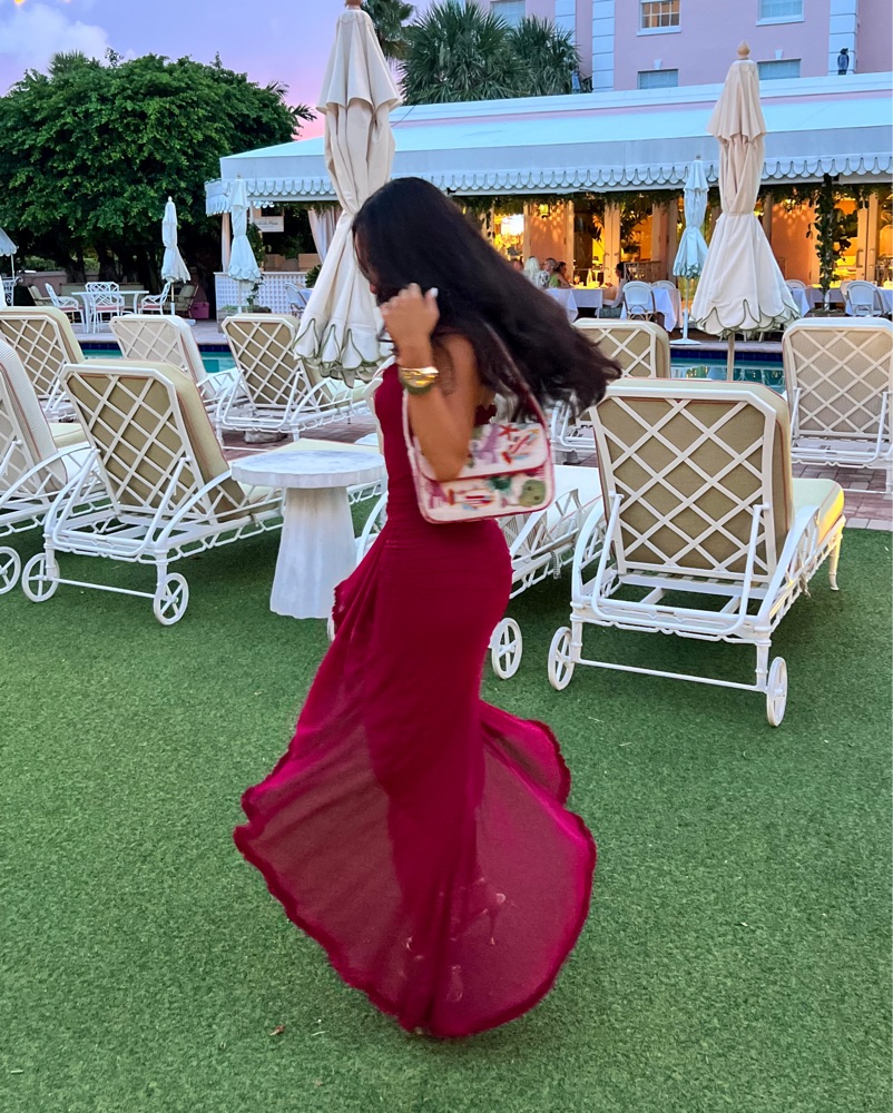 House of CB inspired Gabbi Ruffle Mesh High-Low Cocktail Dress. Perfect for any vacation or wedding!