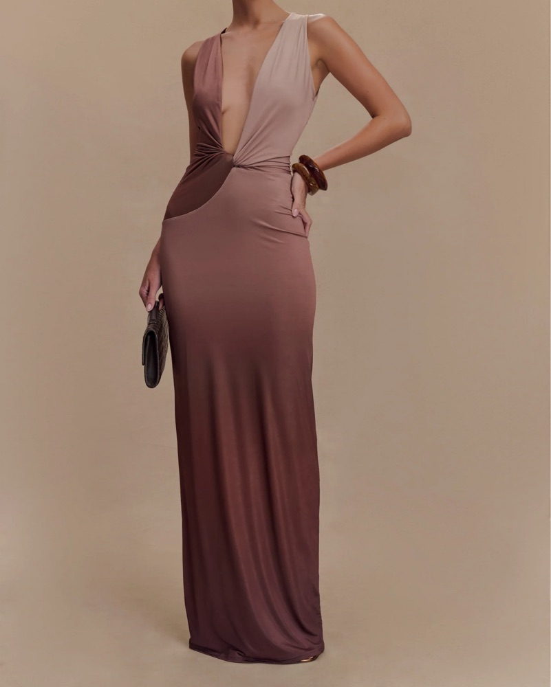 Multicolor blue maxi dress with plunging neckline