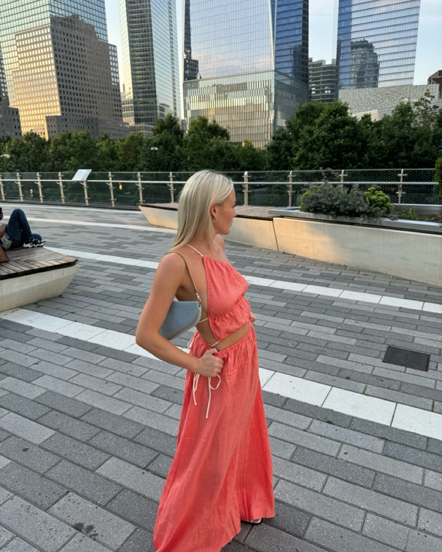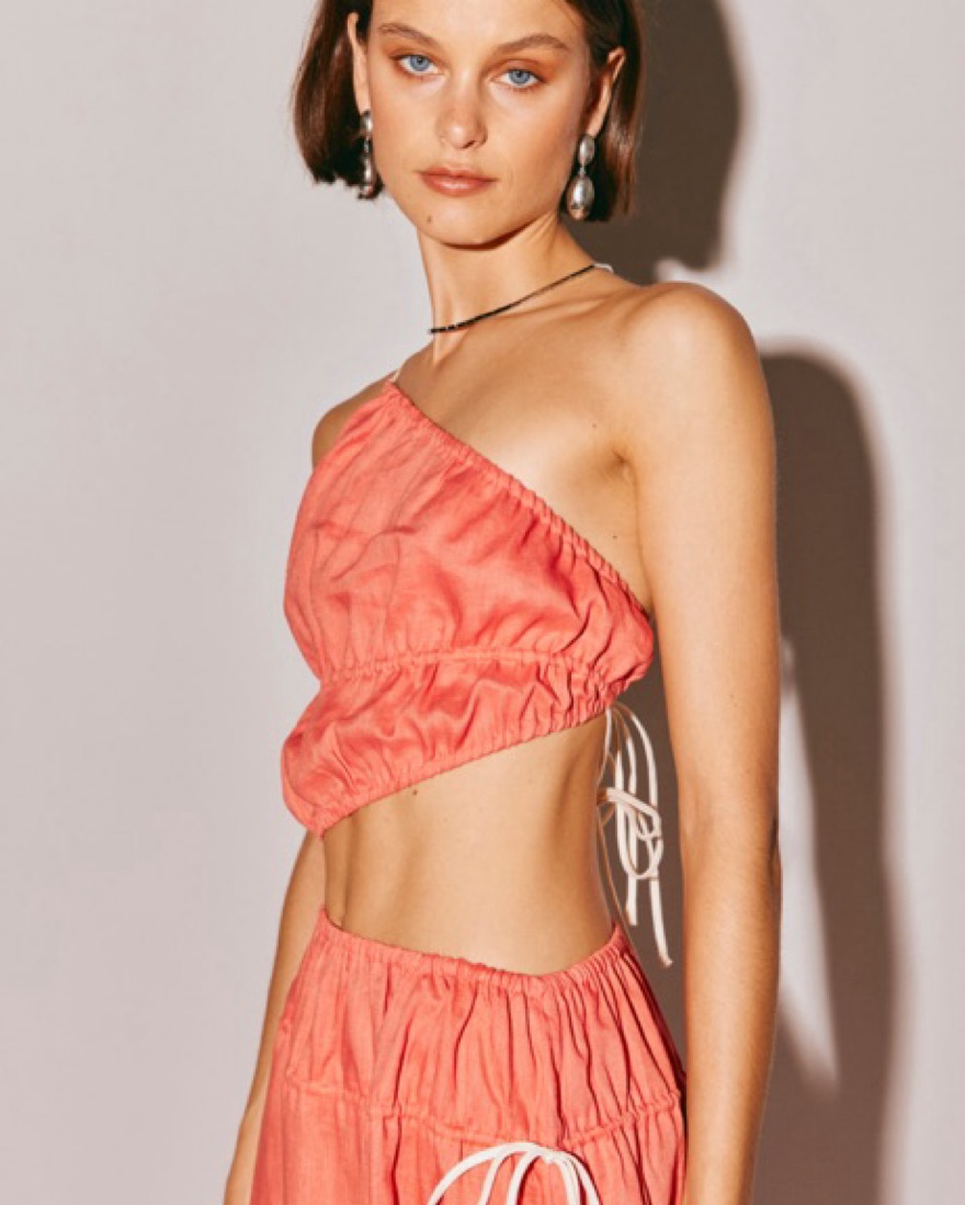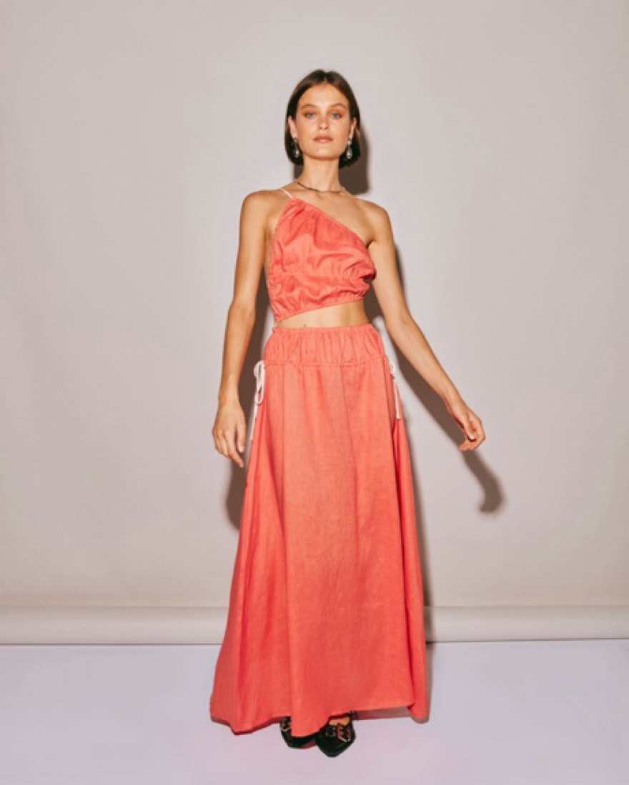 Two Piece Vrg Grl Linen Coral Dress by Vrg Grl - Pickle